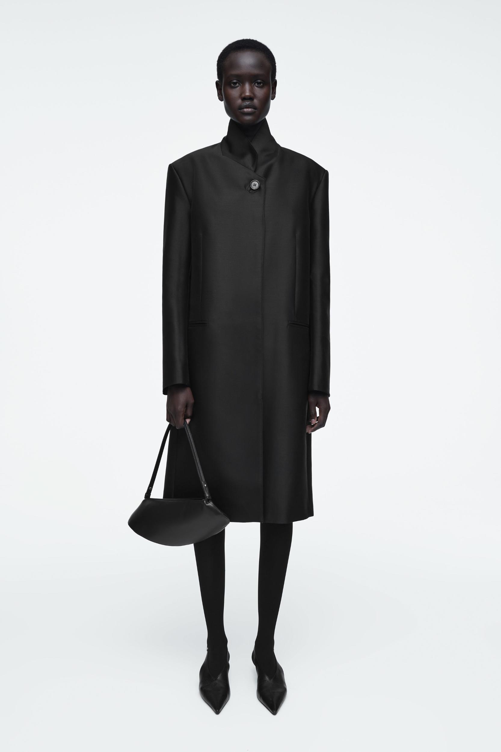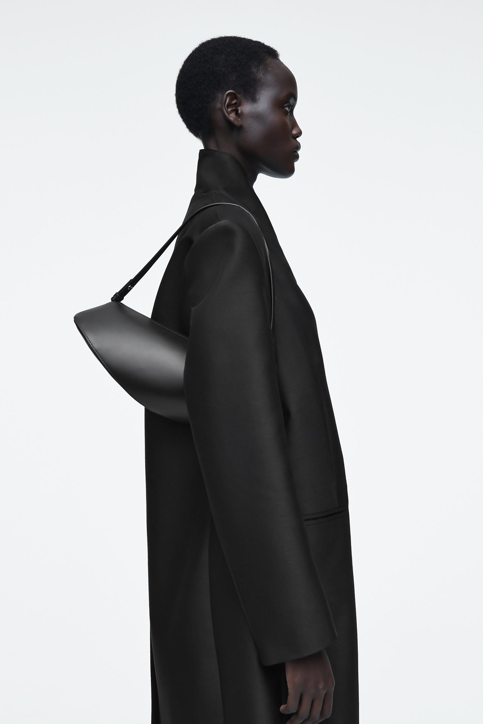 Introducing the Cove clutch: a refined addition to the COS accessories collection. Named for its organic, curved shape, it's crafted from supple leather and designed with a slender shoulder strap that can be detached to carry it in hand. Inside, you'll find a secure zipped pocket for valuables. Zip closureCOS supports responsible manufacturing via the Leather Working Group Shell: 100% Leather. Lining: 100% Cotton. Excluding trims Height: 5.74", Width: 14.17"
