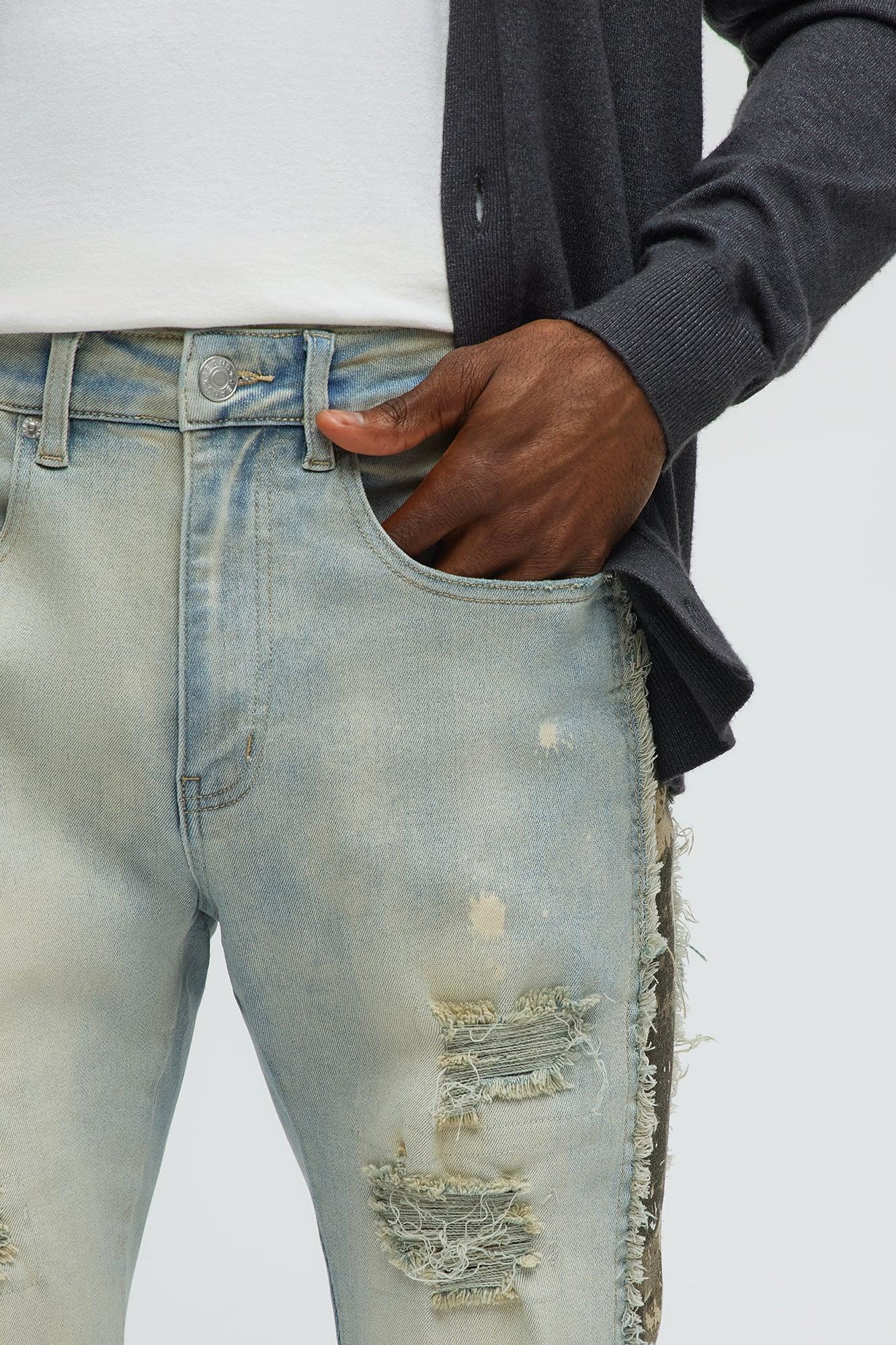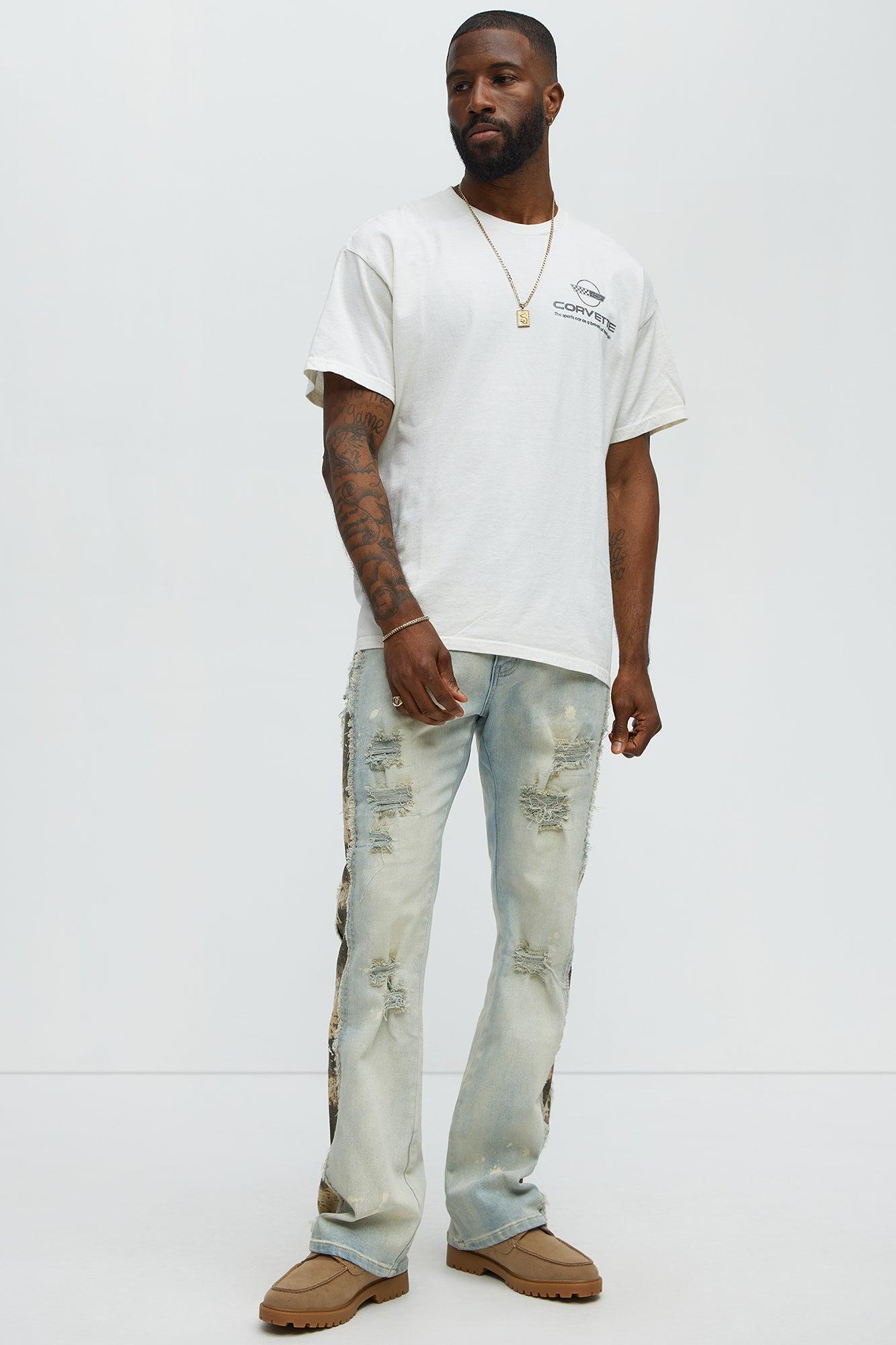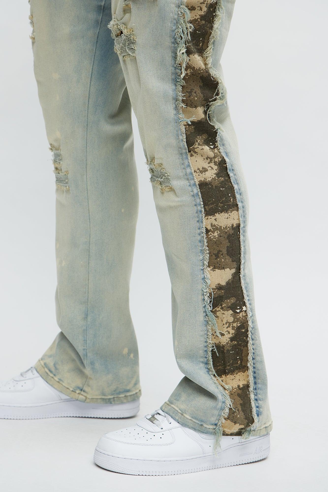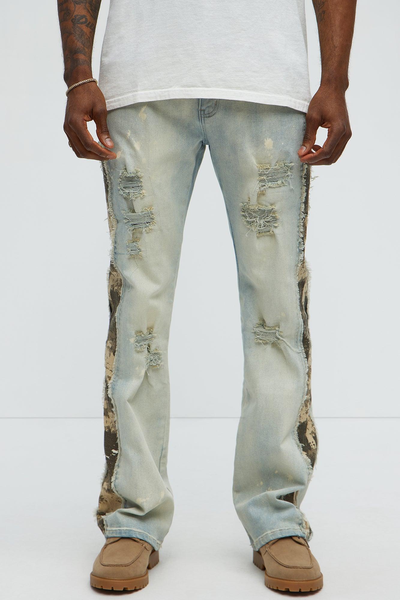 Available In Light Wash. Stacked Skinny Flared Fit Zip Fly Button Closure Side Camo Pattern Detail Distressed Detail Disclaimer: Due To The Specialized Wash & Distressing And Print Process, Each Garment Is Unique. 70% Cotton 28% Polyester 2% Spandex Imported