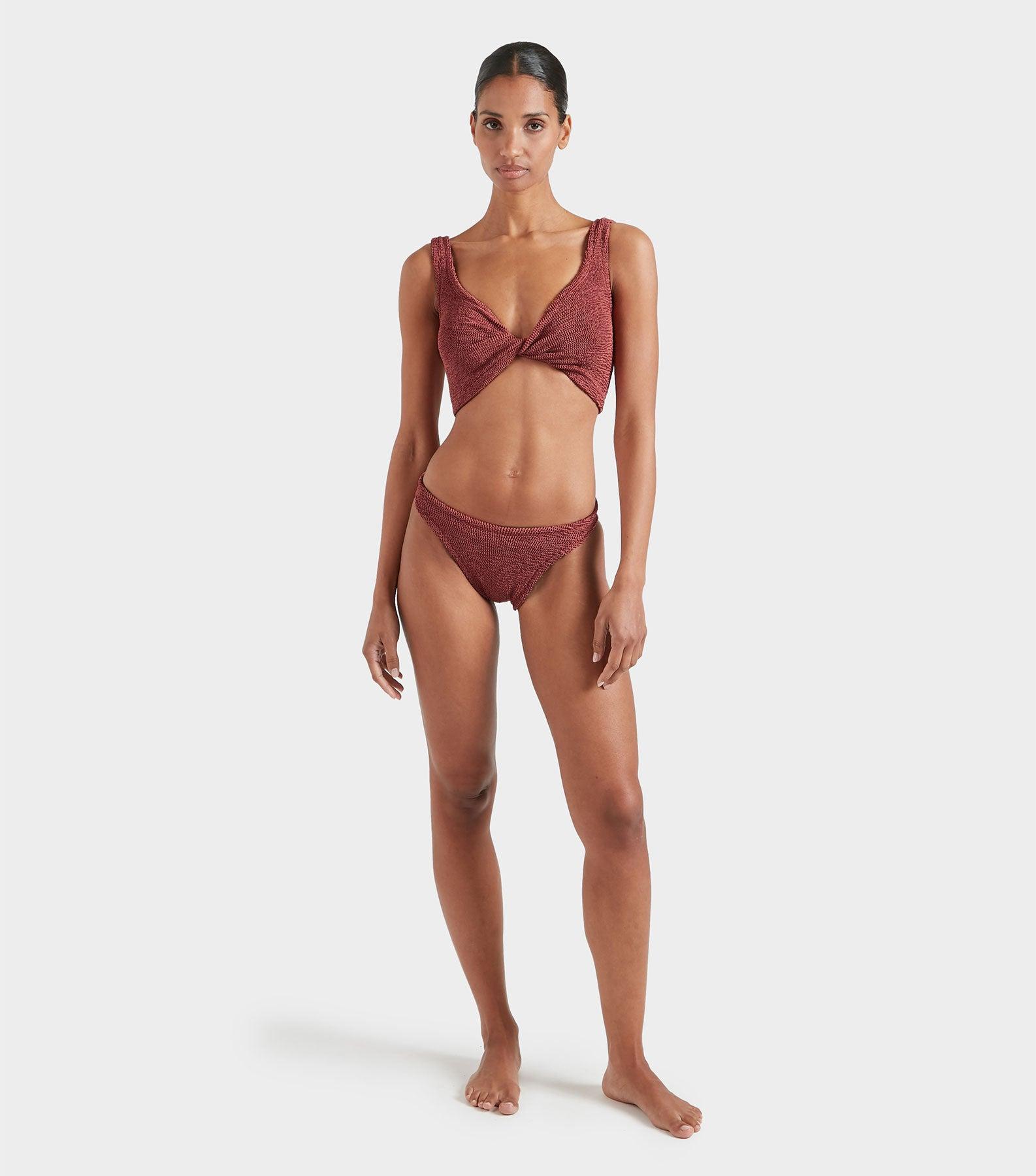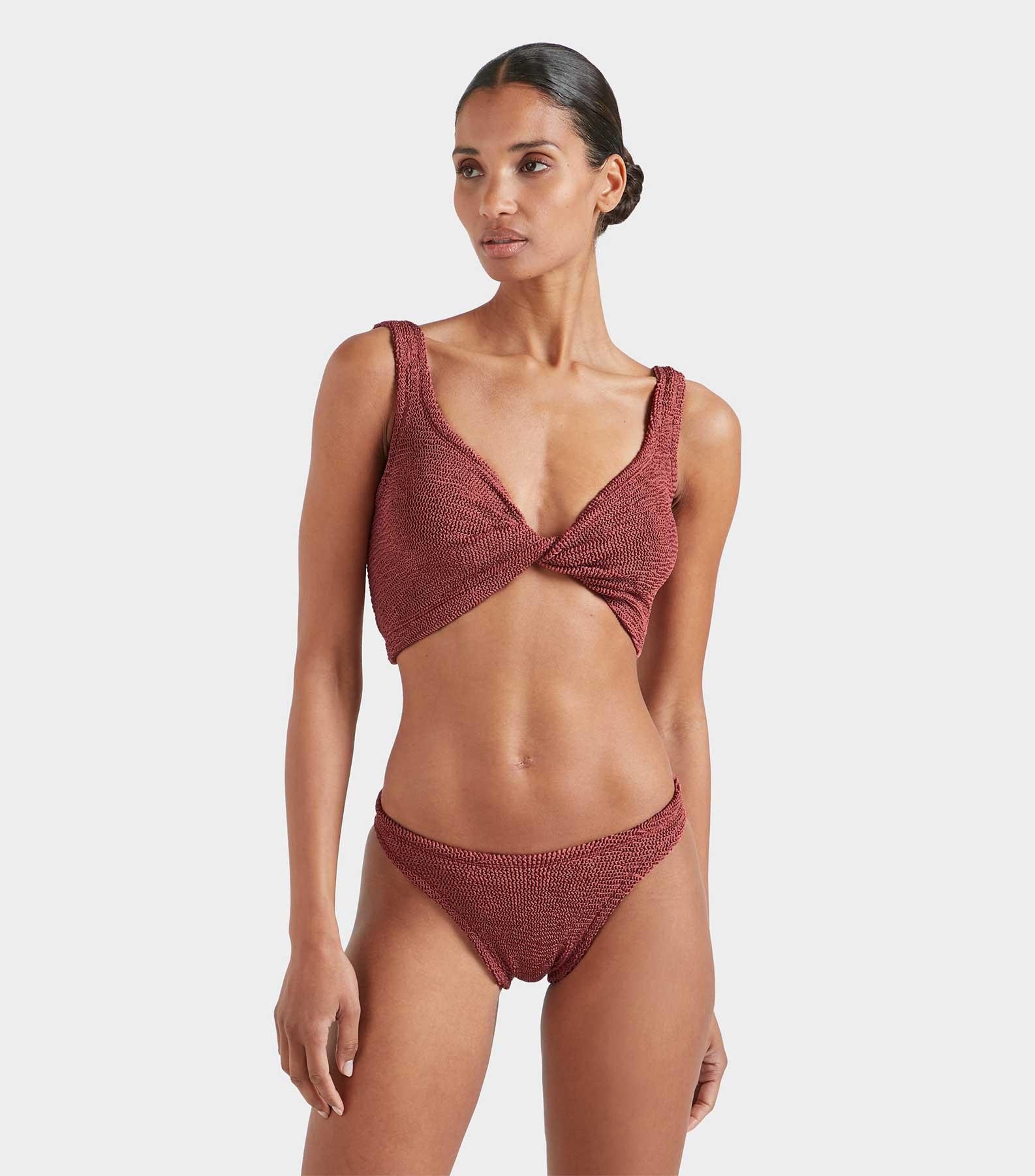 Support and style meet with Juno's twist detail top and bikini bottoms that can be worn high or low on the hip, now with deeper sides and more coverage and grip on the bum.