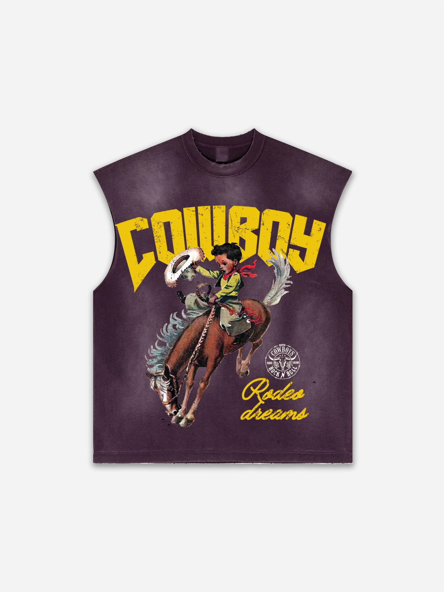 Cowboy Rodeo Dreams Graphic Men's Washed Tank Top Sleeveless Shirts