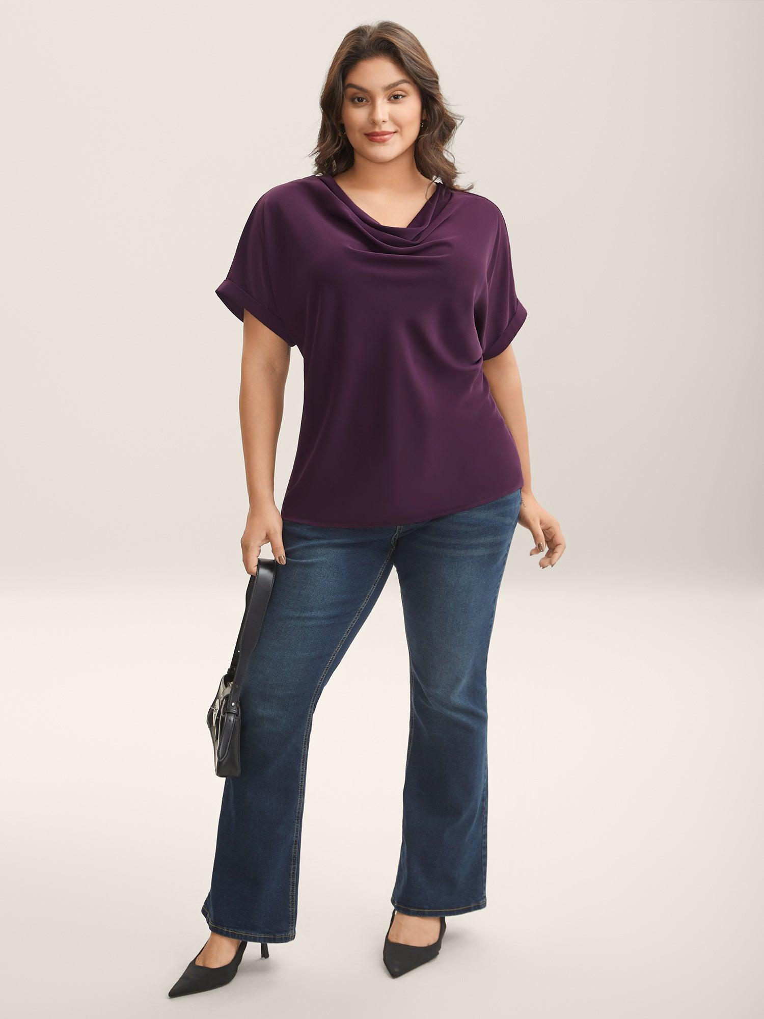 Cowl Neck Plain Dolman Sleeve Blouse Female