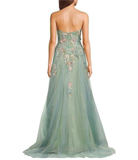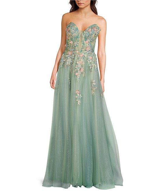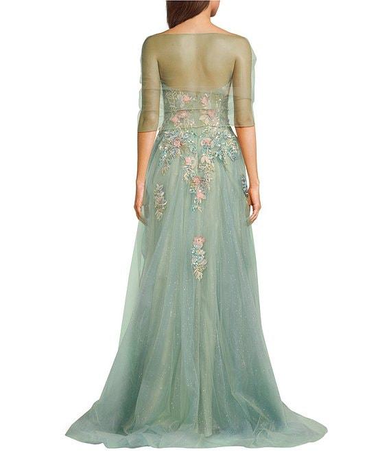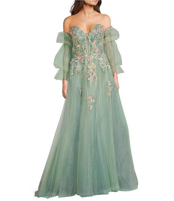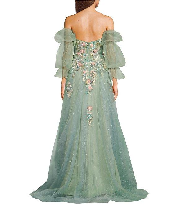 Coya Collection 3D Floral Embroidered Off-The-Shoulder Fitted Bodice Gown
