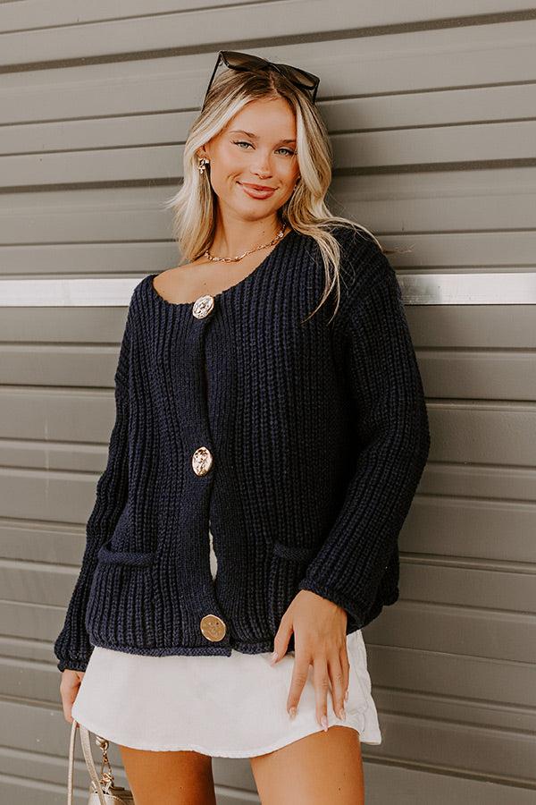 - Say hello to sweater weather's new fave! This knit beauty with its buttoned front and rolled seam accents is here to add a little flair to your everyday looks.