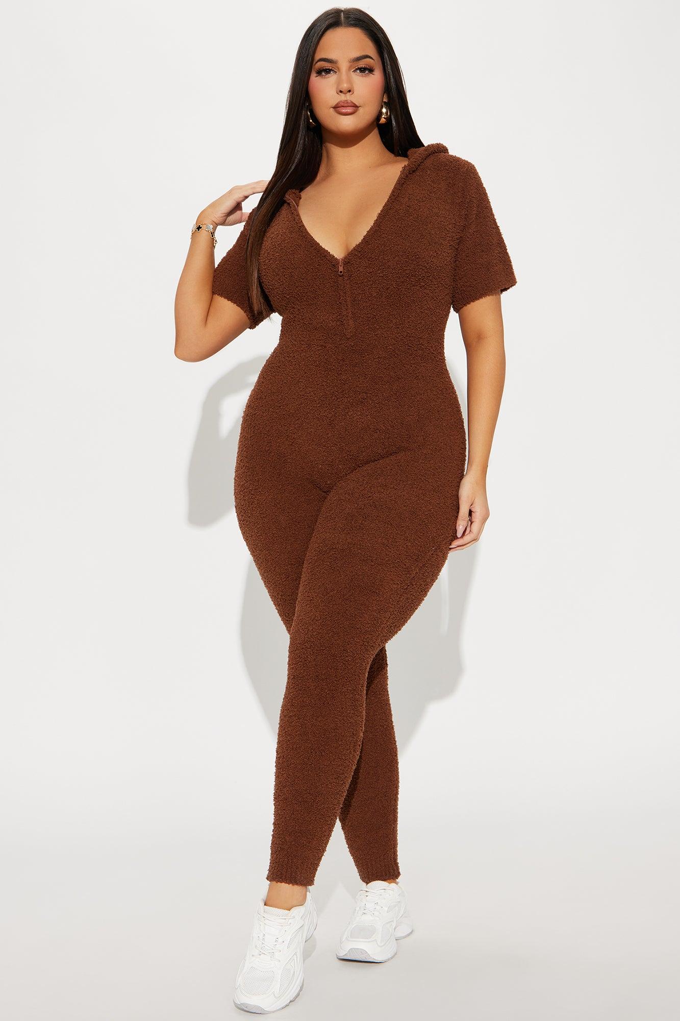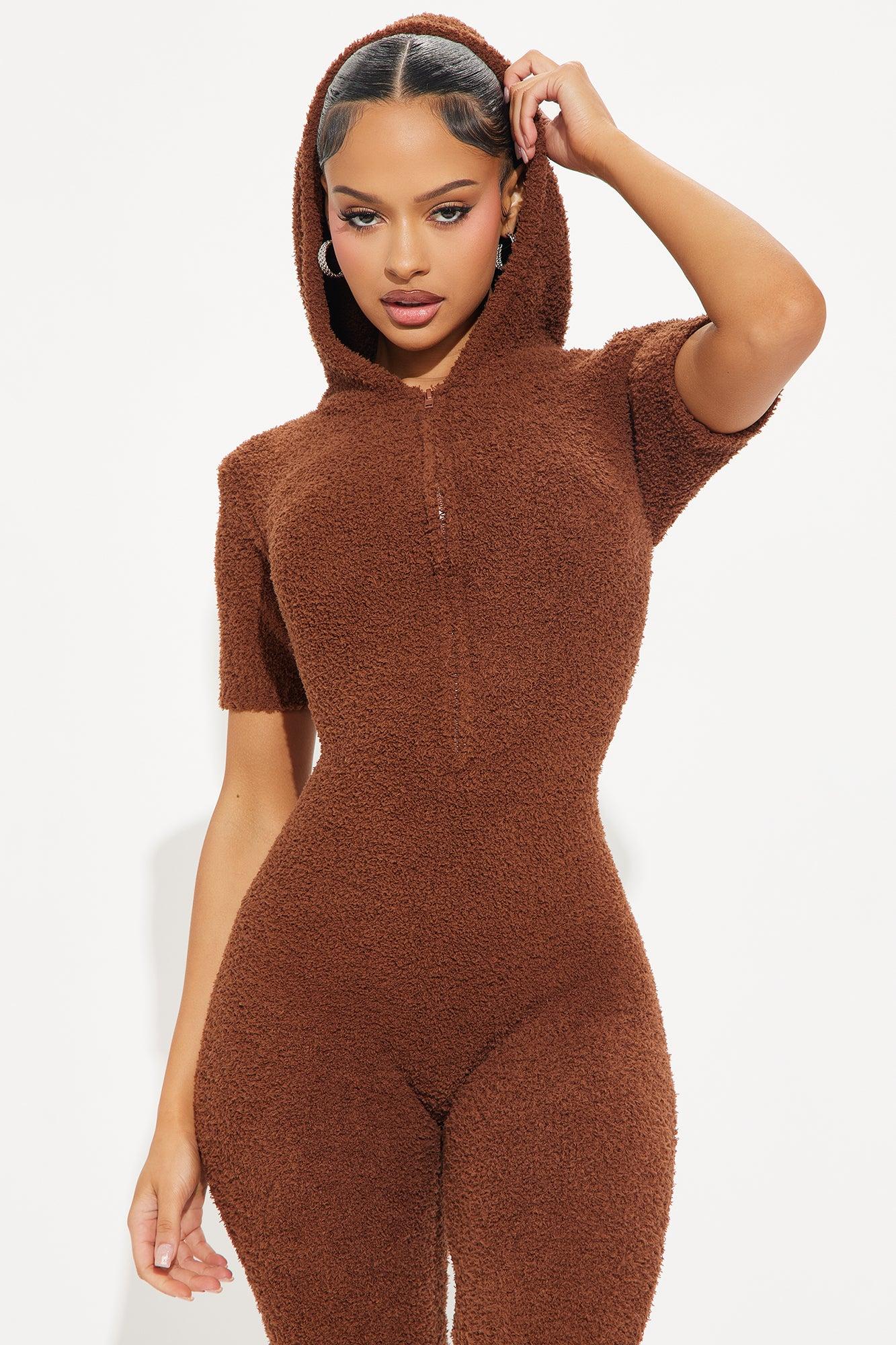 Cozy Era Short Sleeve Jumpsuit - Chocolate
