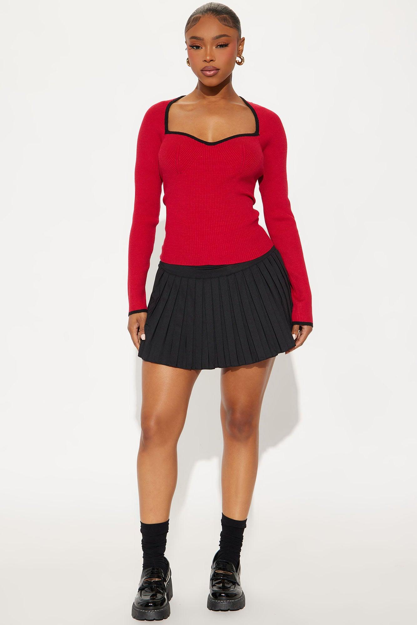Cozy Inside Contrast Sweater Top - Red/Black Female