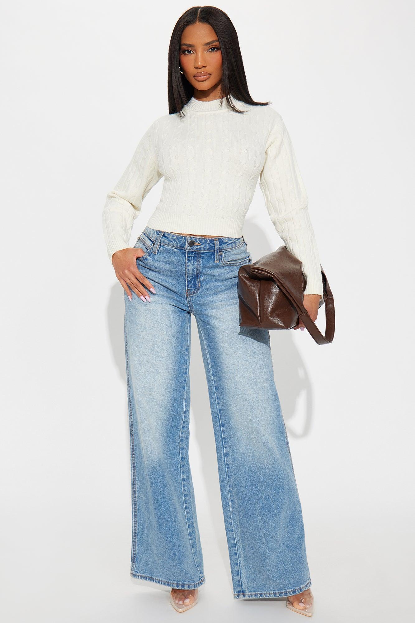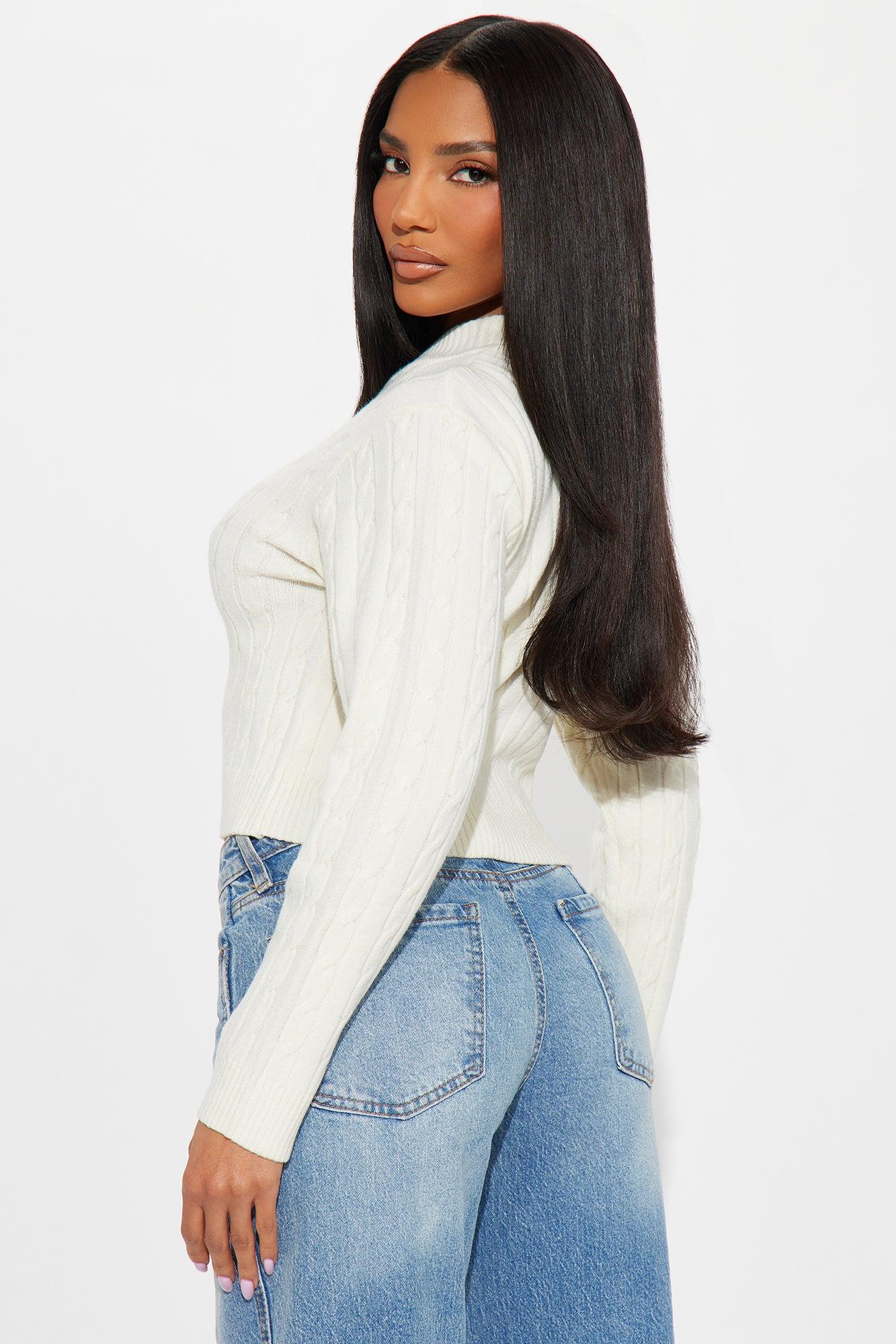 Cozy Mock Neck Cable Knit Sweater - Ivory Female