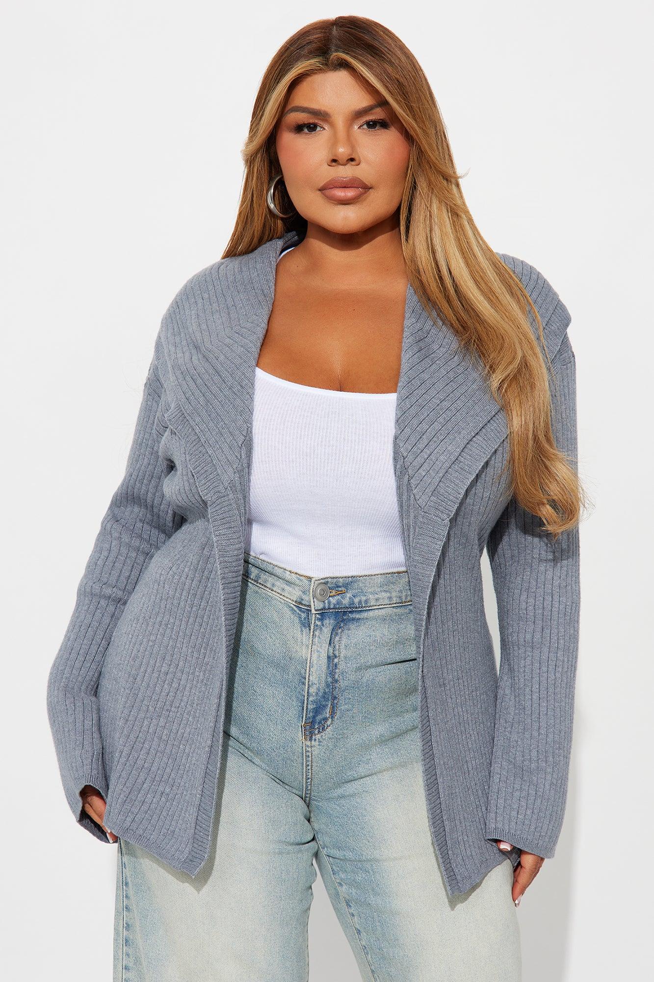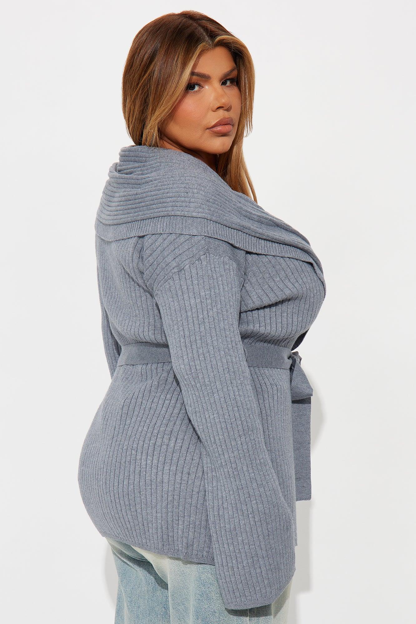 Cozy Queen Tie Waist Cardigan - Grey Female