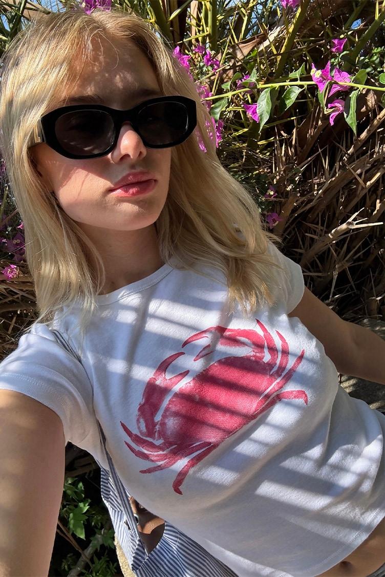 T-shirt with crab print, crew neckline, short sleeves, regular length, relaxed fit.