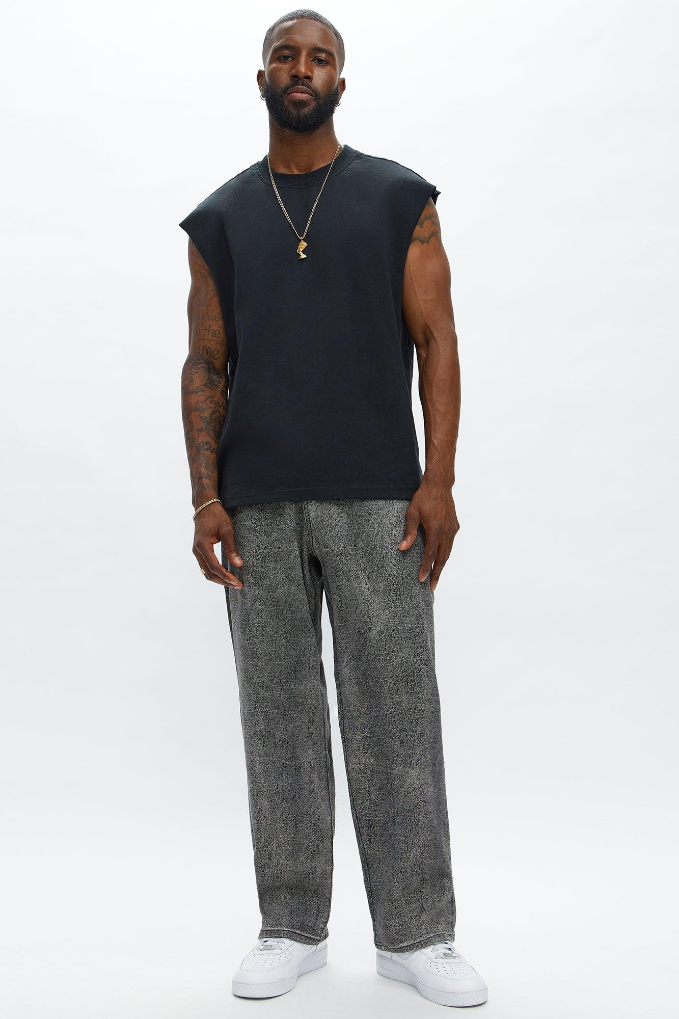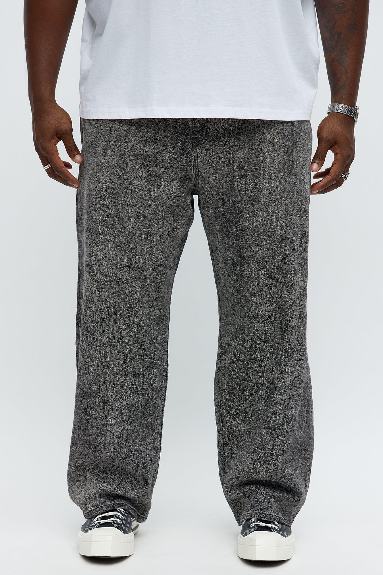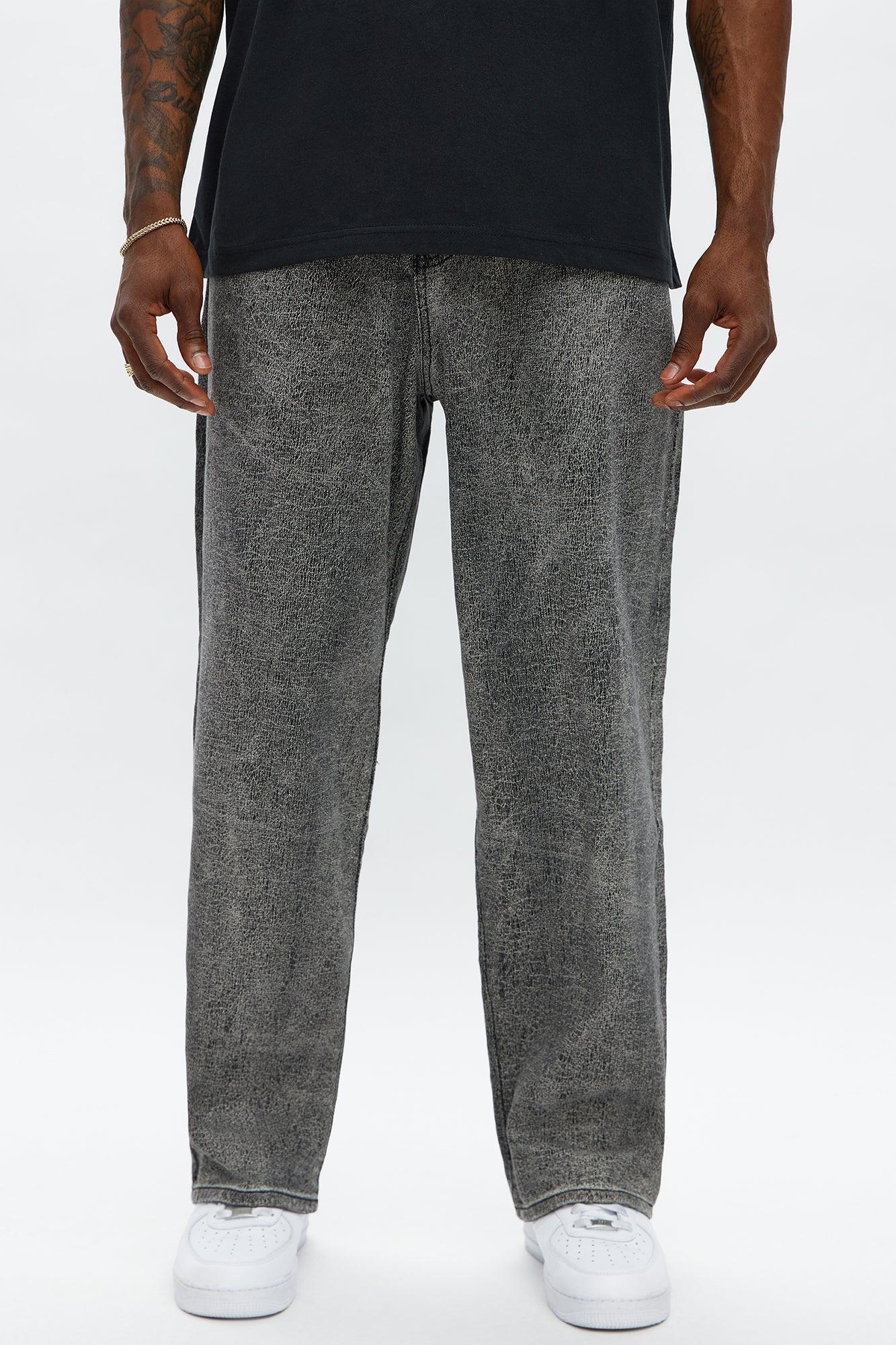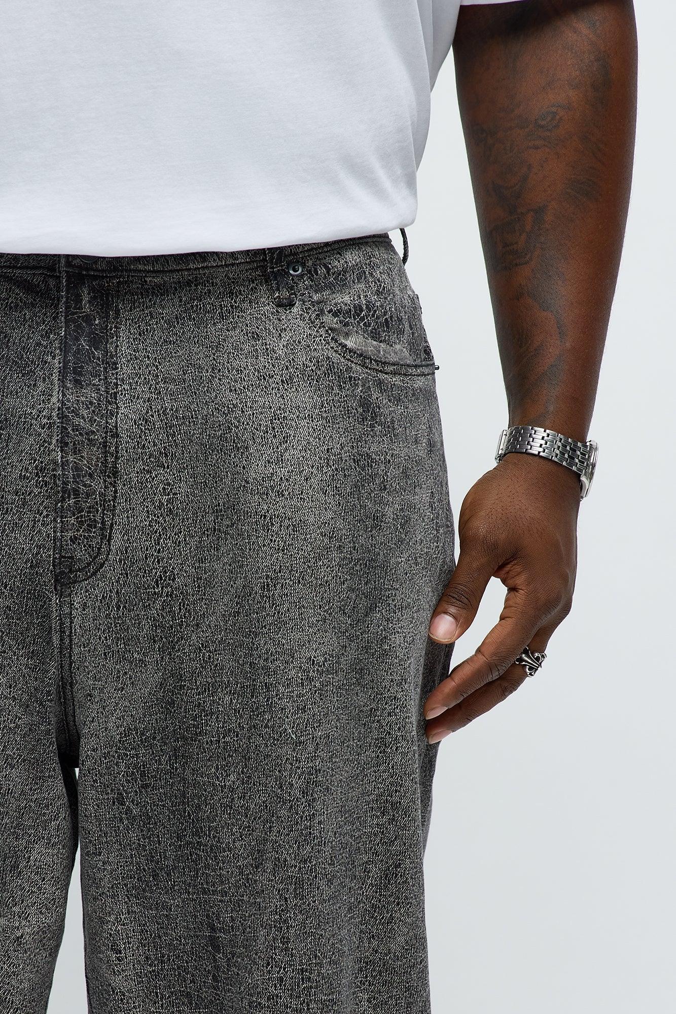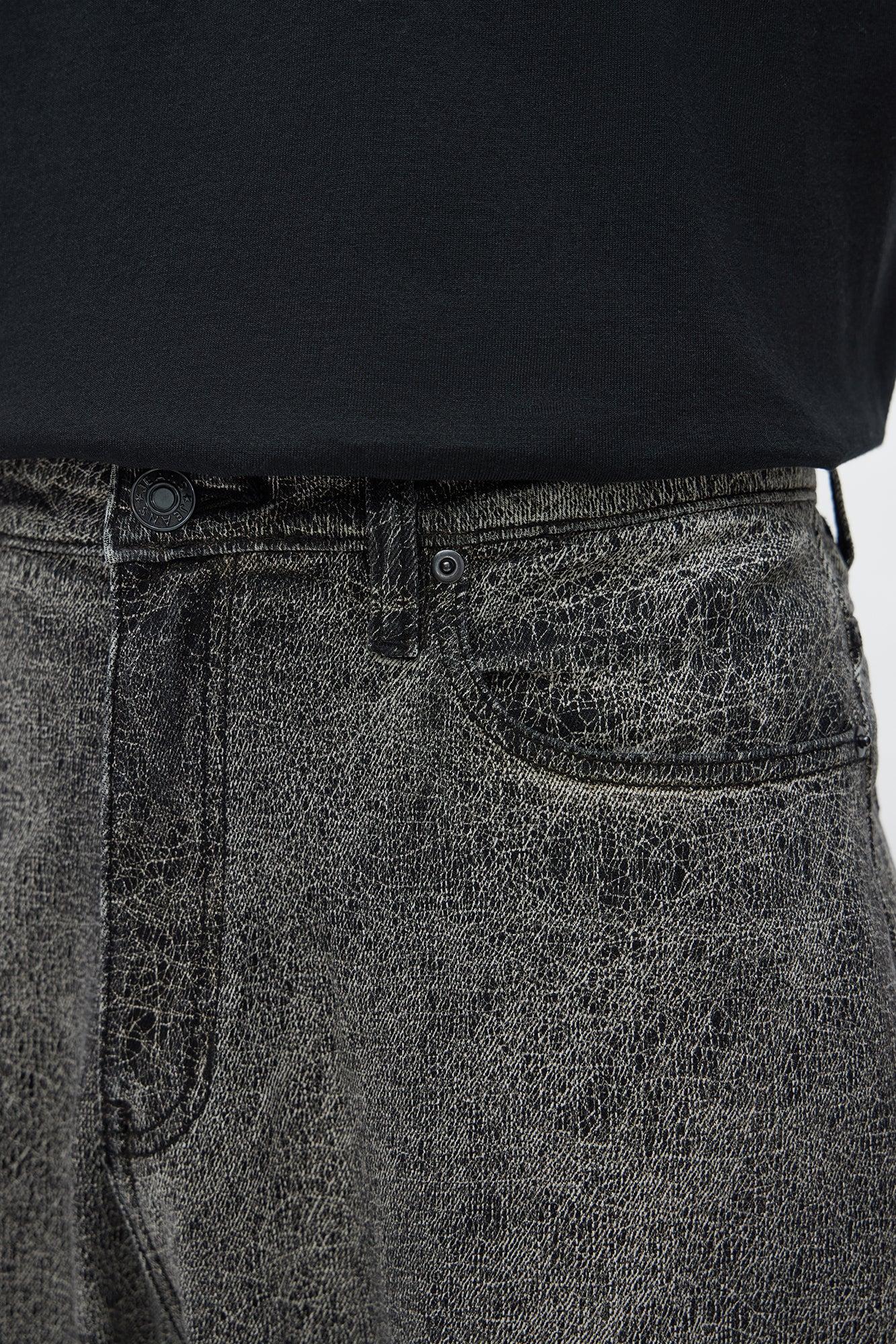 Available In Grey. Crackle Pattern Detail Baggy Fit Zip Fly Button Closure 5 Pocket Body Disclaimer Due To The Specialized Wash & Process, Each Garment Is Unique. Self: 60% Cotton, 35% Polyester, 4%Viscose, 1% Spandex Imported California Proposition 65WARNING: Cancer and Reproductive Harm - www.P65Warnings.ca.gov.