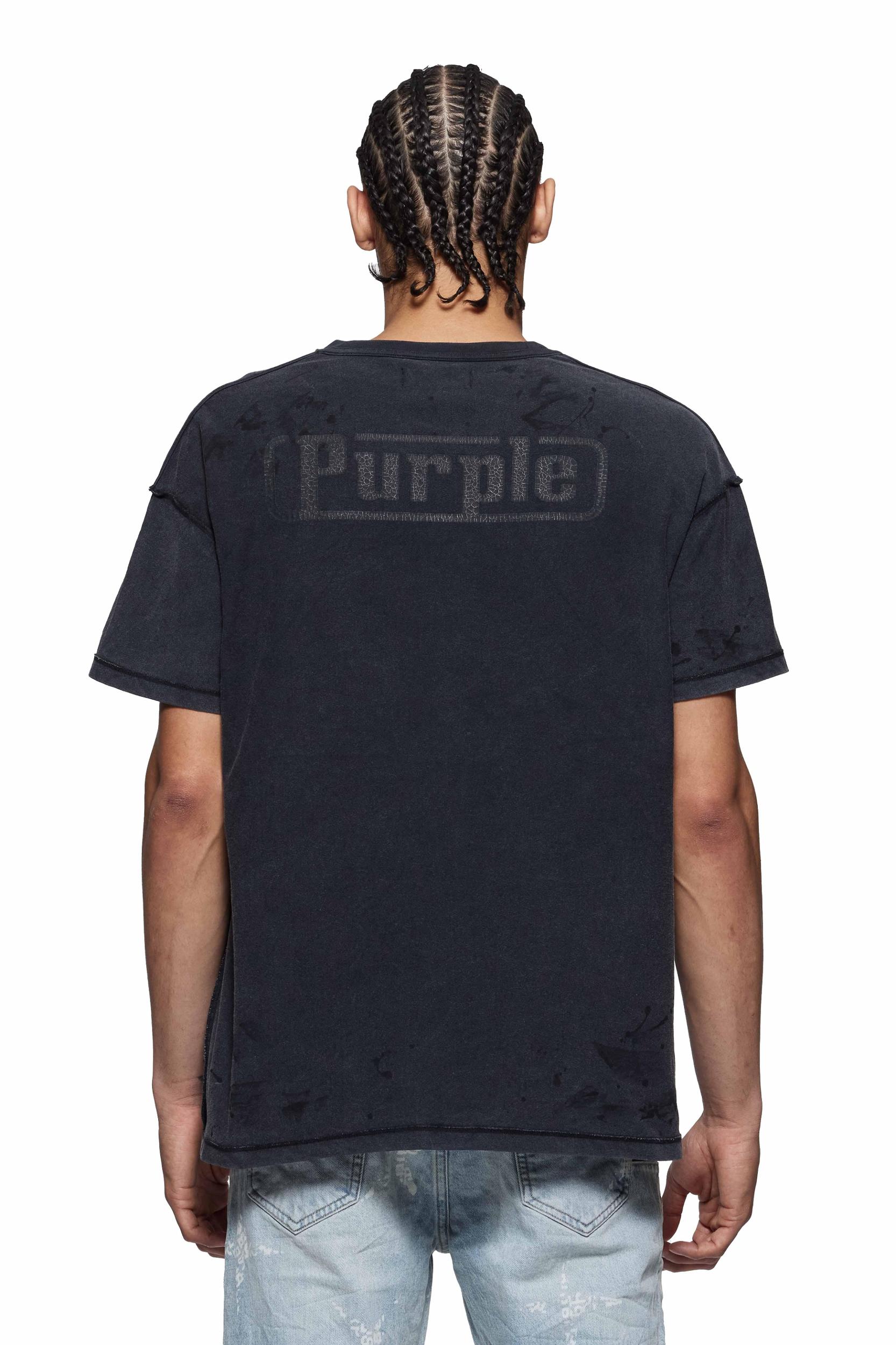 This short-sleeved tee is a premium black textured jersey knit cut from 100% cotton. The lightweight, faded design features “inside out” seaming, Purple Brand logo lettering in the front and the back. It’s finished with a classic crewneck and a relaxed fit for elevated comfort. Pre Spring 2025 White Label 100% Cotton Regular Fit Faded Wash Crackle Print & Pigment Print