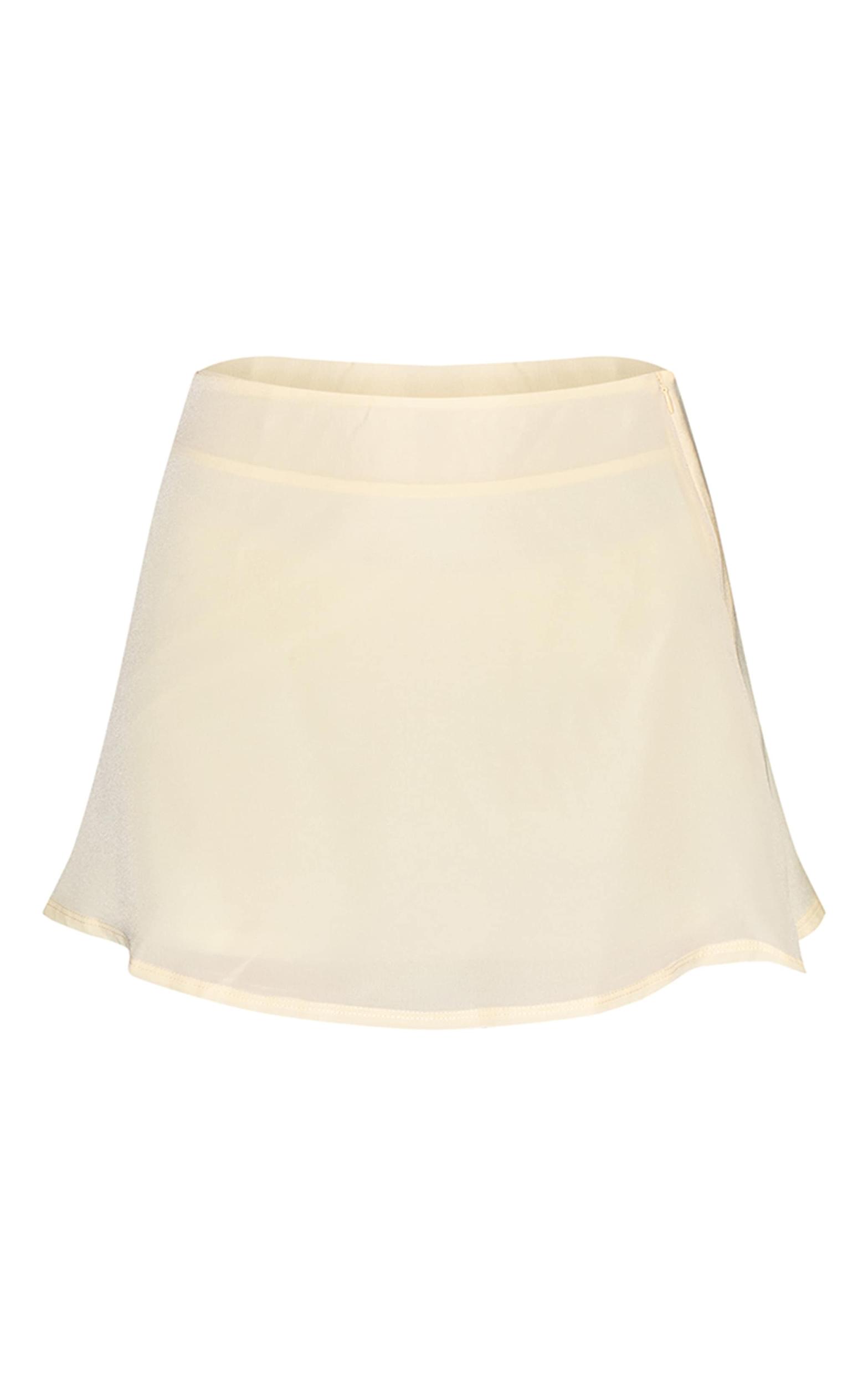 Keep it flirty with the cream chiffon flippy mini skirt. Brought to you in a cream chiffon material with a flippy design and mini length, this skirt adds playful movement. Pair with a the matching top and heels for a sweet daytime vibe.Length approx 33cm/13inch (Based on sample size US 4)Model wears size UK 8/ EU 36/ AUS 8/ US 4Model Height - 5ft 7inchp]:!mb-4inch>Brand: PrettyLittleThingCategory: BottomsProduct type: Mini SkirtColor: CreamMaterial: ChiffonDesign: PlainOccasion: Evening