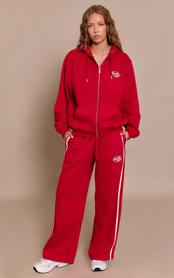 This red sports club cotton fleece oversized full zip hoodie defines casual cool. Its red hue boasts a full zip, hooded neckline, and oversized fit. Ideal for confident day plans, from gym sessions to brunch. Pair with the matching bottoms and chunky sneakers for a comfy finish.Length approx 48.5cm/19inch (Based on sample size S)Model wears size SModel Height - 5ft 10inchp]:!mb-4inch>Brand: PrettyLittleThingCategory: AthleisureProduct type: SweatColor: RedMaterial: Fleeceback SweatDesign: PlainOccasion: Day