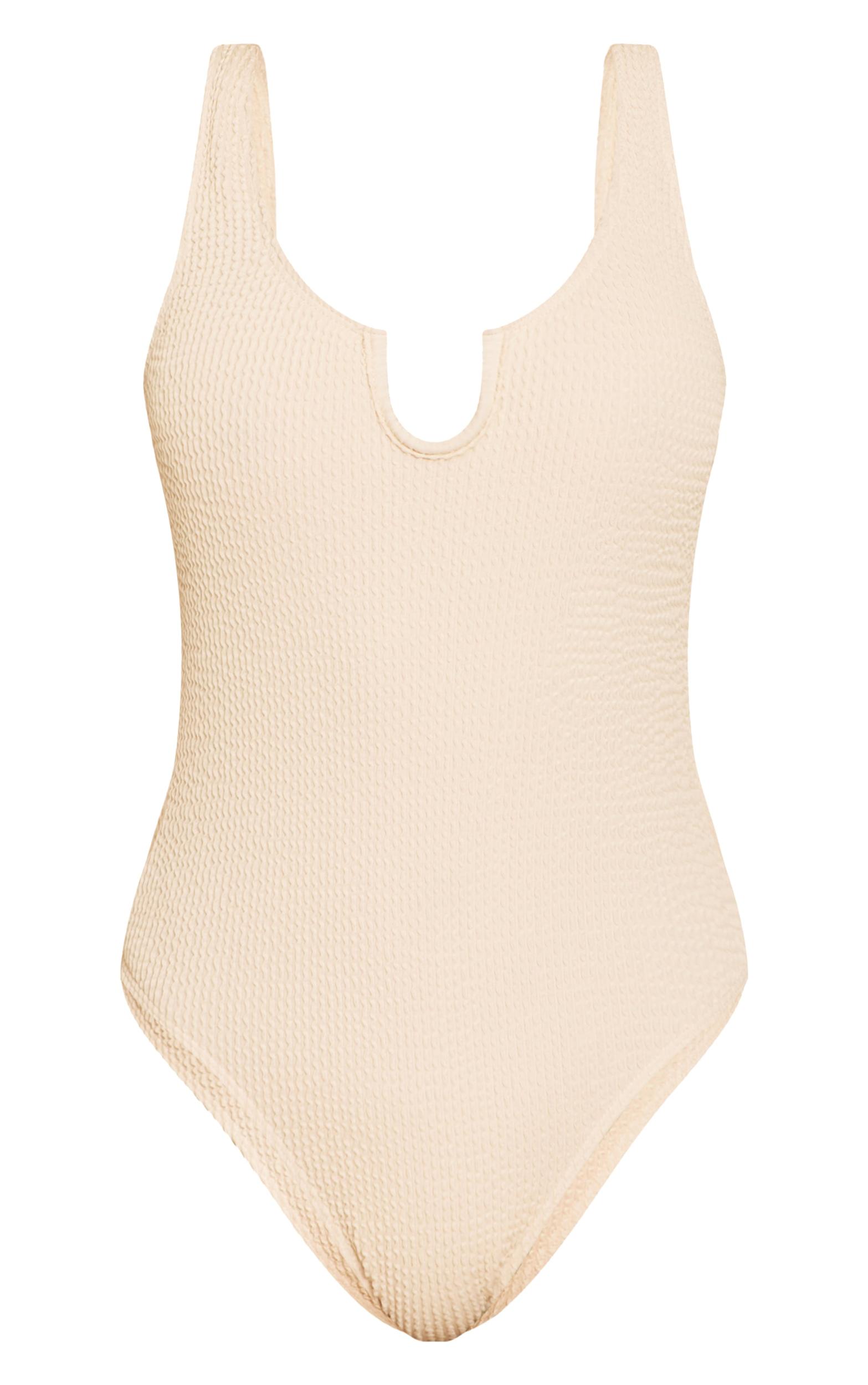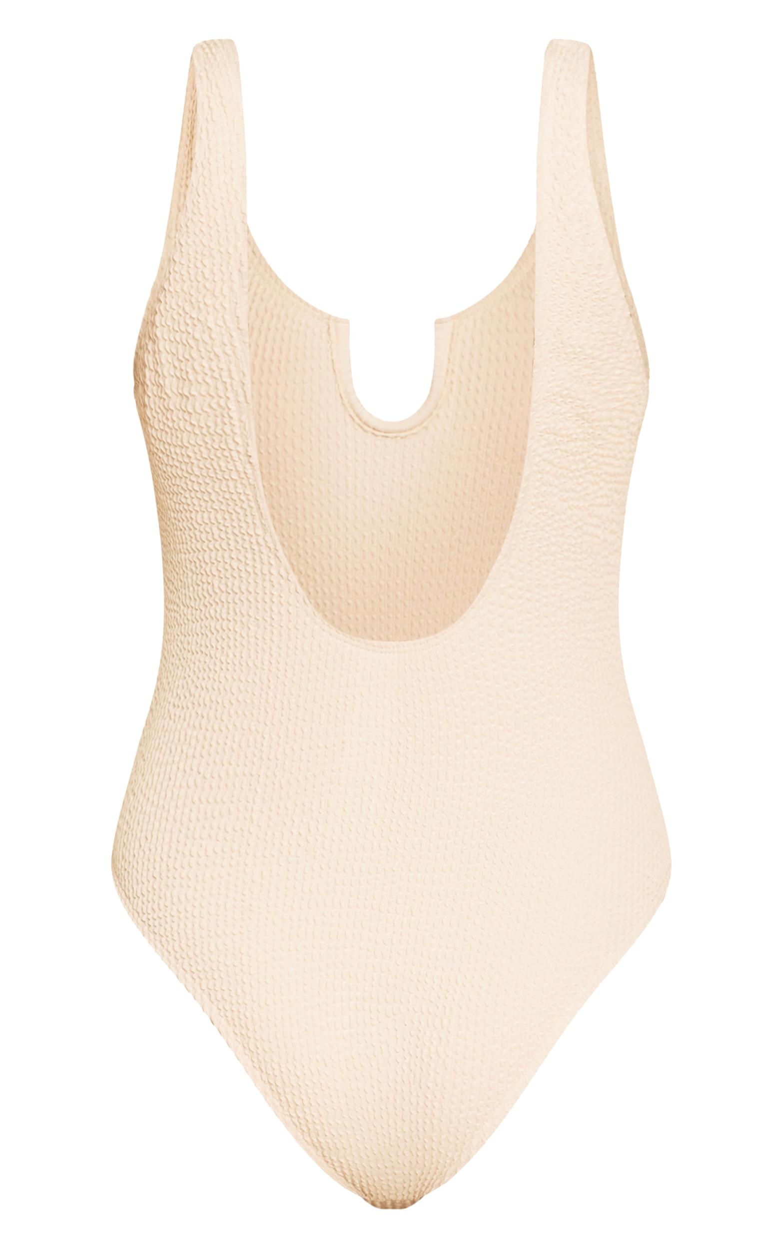 Made from a versatile neutral cream material with a flattering scoop back design and a plunge neck detailing. Team this cream crinkle scoop back swimsuit with your beach day accessories, a pair of slip-on sandals and your go-to sunglasses for a look like no other.Length approx 66cm/26inch (Based on sample size US 4)Model wears size UK 8/ EU 36/ AUS 8/ US 4Model Height - 5ft 8inchp]:!mb-4inch>Brand: PrettyLittleThingCategory: SwimwearProduct type: SwimsuitColor: CreamMaterial: SwimOccasion: Day