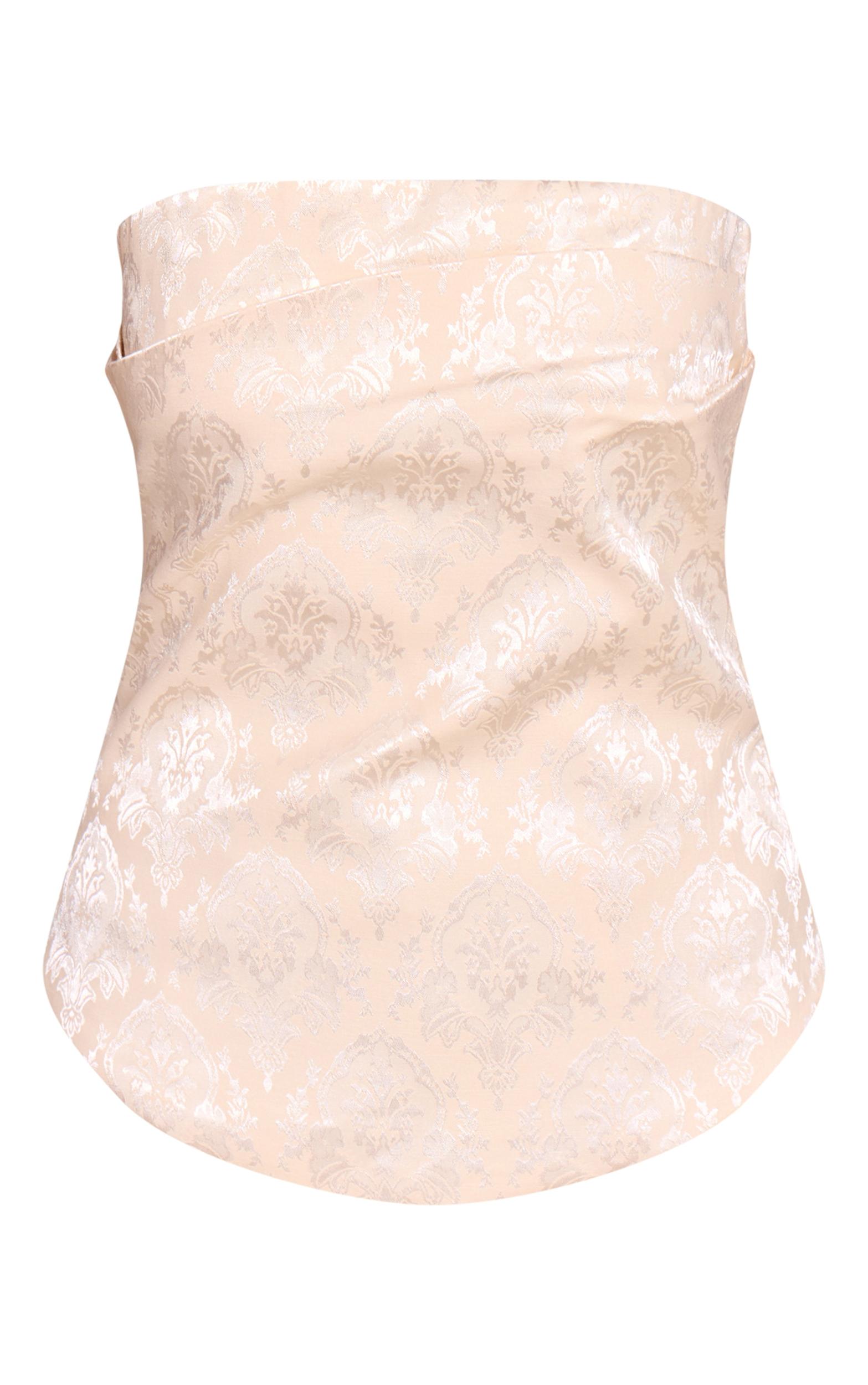 Make a refined statement with an effortlessly artful silhouette. The cream embroidered jacquard corset top is designed for confident occasion dressing, featuring a chic strapless neckline that highlights the collarbone. Its structured shape is detailed with an intricate embroidered jacquard pattern, complemented by a distinctive curved hem that artfully defines the waist. Pair this elevated piece with tailored wide-leg pants or a sleek maxi skirt, grounding your ensemble with elegant gold heels and finishing with coordinating hoops for a polished and knowing presence.Length approx 34.5cm/13.5inch (Based on sample size US 4)Model wears size UK 8/ EU 36/ AUS 8/ US 4Model Height - 5ft 9inchp]:!mb-4inch>Brand: PrettyLittleThingCategory: TopsProduct type: CorsetColor: CreamMaterial: Woven JacquardDesign: EmbroideredNeckline: BandeauSleeves: BandeauOccasion: Occasion