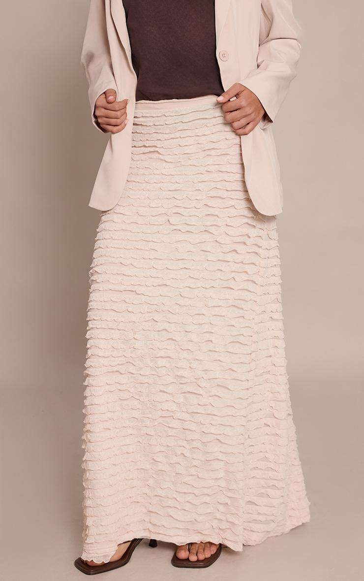 Own your aesthetic in this cream ruffle floaty maxi skirt. Made from cream material, this skirt has elaborate ruffle detailing and a maxi length fit. For the ultimate boho look, add a neutral toned vest top, flat sandals and a slouchy clutch.Length approx 108cm/42.5inch (Based on sample size US 4)Model wears size UK 8/ EU 36/ AUS 8/ US 4Model Height - 5ft 7inchp]:!mb-4inch>Brand: PrettyLittleThingCategory: BottomsProduct type: Maxi SkirtColor: CreamMaterial: Textured JerseyDesign: PlainOccasion: Day