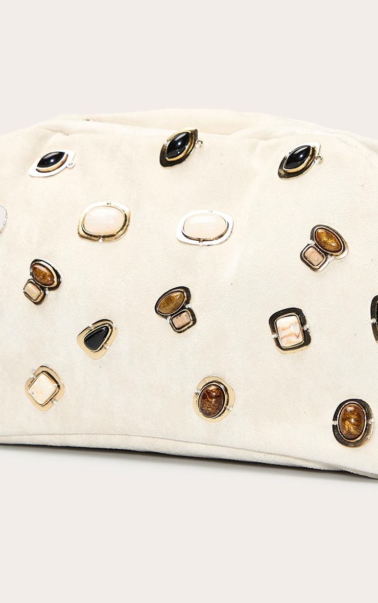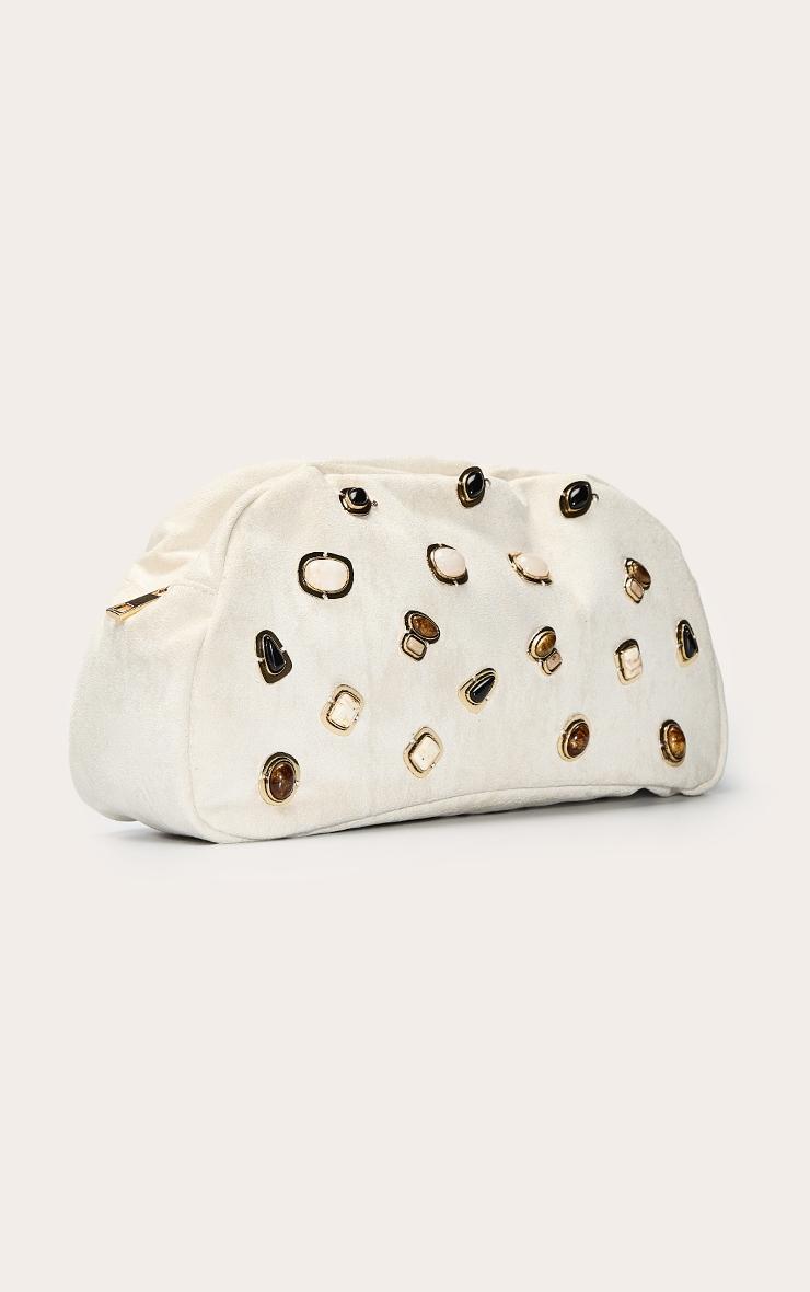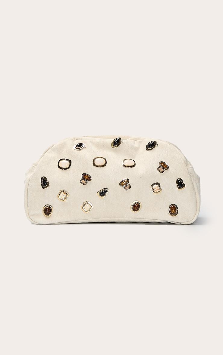 The cream faux suede dome stud clutch bag is a sophisticated piece featuring metallic dome studs for a subtle edge. Its compact design makes it perfect for evening, while the cream hue keeps it timeless and versatile. Style with monochrome tailoring for a minimal-chic effect, or pair with pastel maxi dresses for a soft, feminine contrast. Approx Height: 9cm/3.5inch Approx Width: 19cm/7.5inch Approx Depth: 4cm/1.5inchp]:!mb-4inch>Brand: PrettyLittleThingCategory: AccessoriesProduct type: ClutchColor: CreamMaterial: Patent PUOccasion: Day
