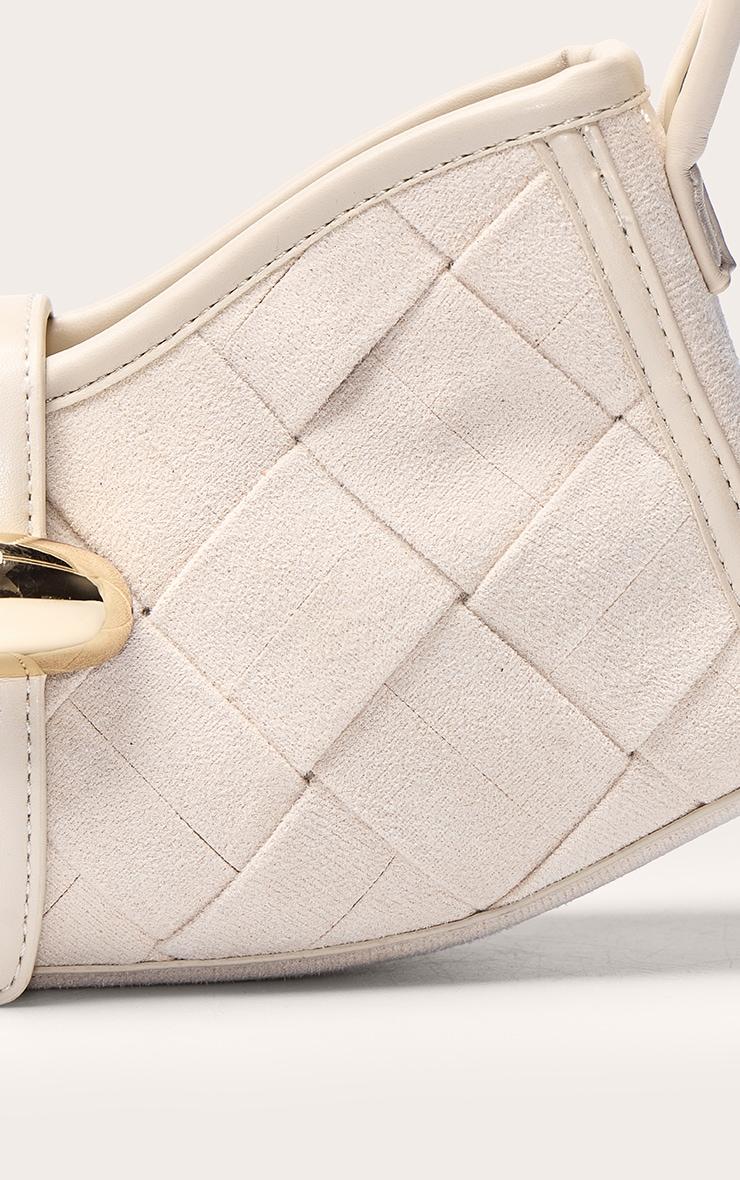 Take your look to new heights with this cream faux suede weave buckle shoulder bag. Made from cream faux suede, this back has a chunky buckle, woven effect and a double shoulder strap. Add it to a neutral outfit for a coordinated look. Approx Height: 14cm/5.5inch Approx Width: 20.5cm/8inch Approx Depth: 6cm/2.5inchp]:!mb-4inch>Brand: PrettyLittleThingCategory: AccessoriesProduct type: Shoulder BagColor: CreamMaterial: Faux SuedeOccasion: Day
