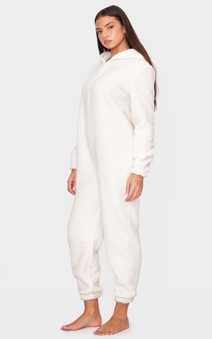 Stay cosy this season in this cream hooded fleece onesie. Brought to you in a cream hue fleece material with a hooded design, this onesie is all the new you need. How can you resist? Style with simple accessories for a look that's sure to keep you warm and chic. Length approx 150cm/59inch (Based on a sample size S) Model wears size S Model Height - 5ft 8inchp]:!mb-0inch>Category: Lingerie & NightwearProduct type: OnesieColor: CreamMaterial: Fleece