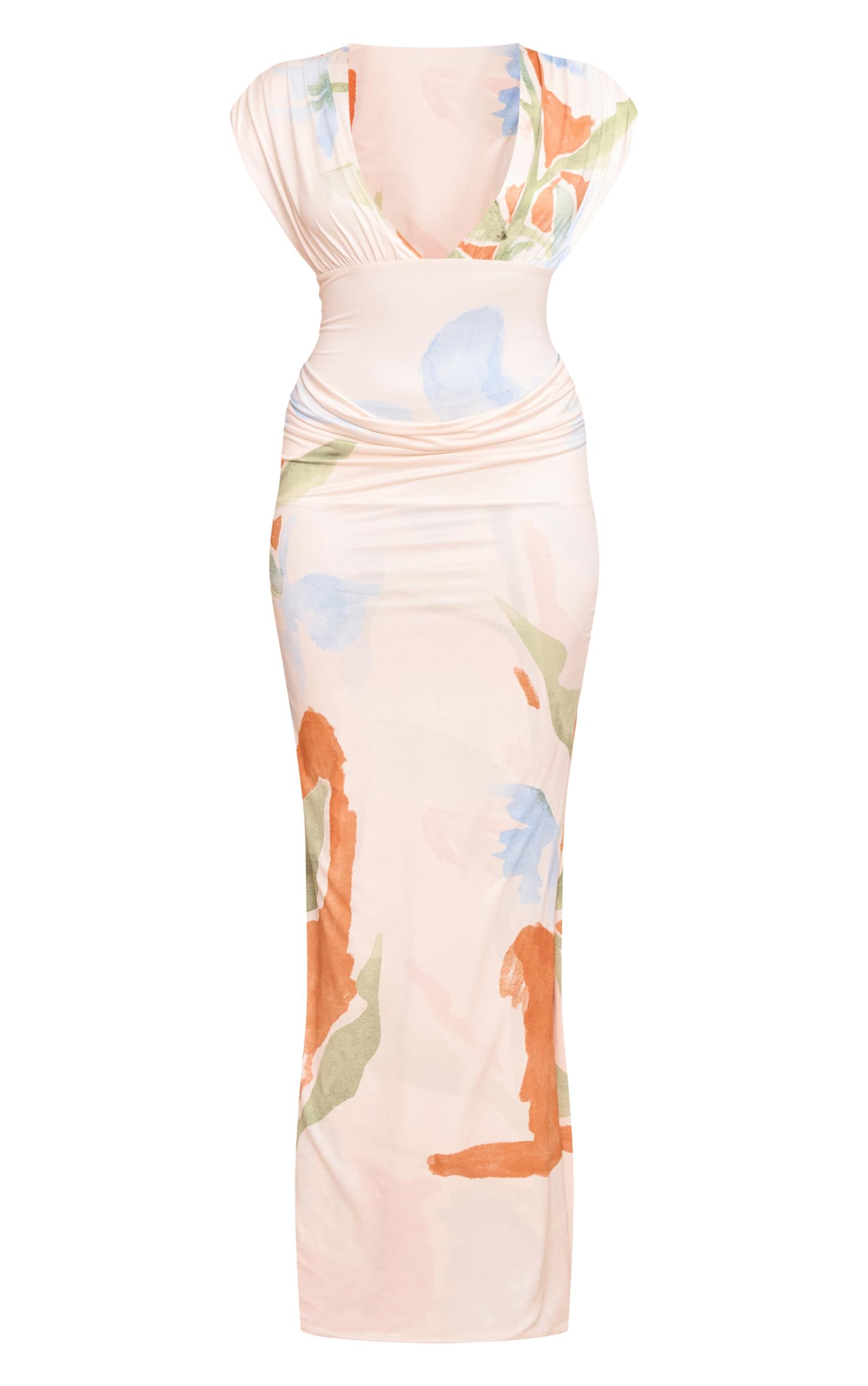 Steal the spotlight in the cream printed double layer plunge ruched shoulder drape waist maxi dress. Brought to you in a cream printed double layer fabric with a plunge neckline, ruched shoulder detail, drape waist and maxi length, this piece is made for occasions. Pair with strappy heels and gold accents for a show-stopping look.Length approx 155cm/61inch (Based on sample size US 4)Model wears size UK 8/ EU 36/ AUS 8/ US 4Model Height - 5ft 9inchp]:!mb-4inch>Category: DressesProduct type: Bodycon DressColor: CreamMaterial: Single JerseyOccasion: Occasion