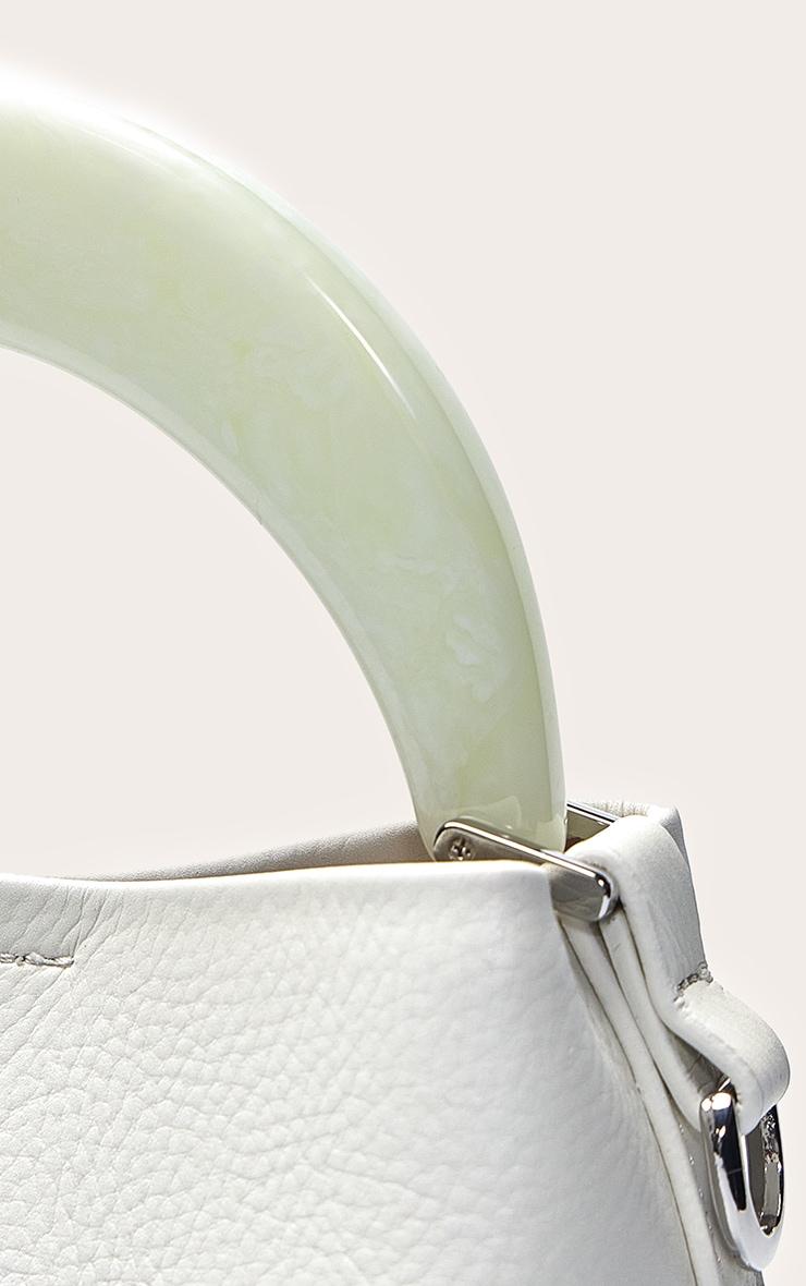 The cream resin handle bucket bag is a refined yet modern accessory. Featuring a soft bucket silhouette in smooth cream with a glossy resin handle, it strikes the perfect balance between timeless design and contemporary flair. Spacious enough for daily essentials yet chic enough for evening wear. Style with wide-leg pants and a silk blouse for day-to-night polish, or pair with a summer dress and strappy sandals for a fresh, feminine look. Approx Height: 33cm/13inch Approx Width: 30cm/12inch Approx Depth: 2.5cm/1inchp]:!mb-4inch>Category: AccessoriesProduct type: HandbagColor: CreamMaterial: Patent PUOccasion: Day
