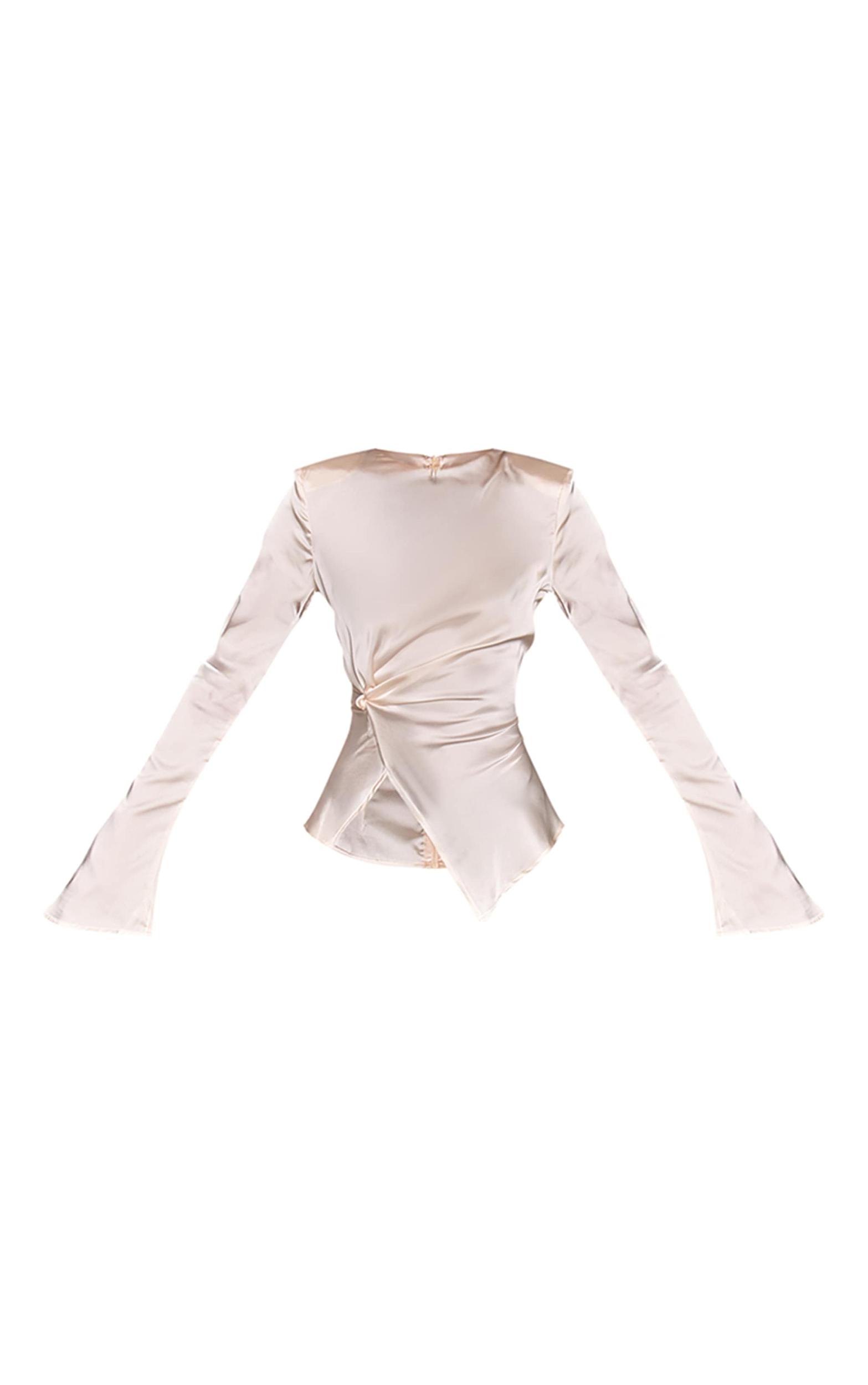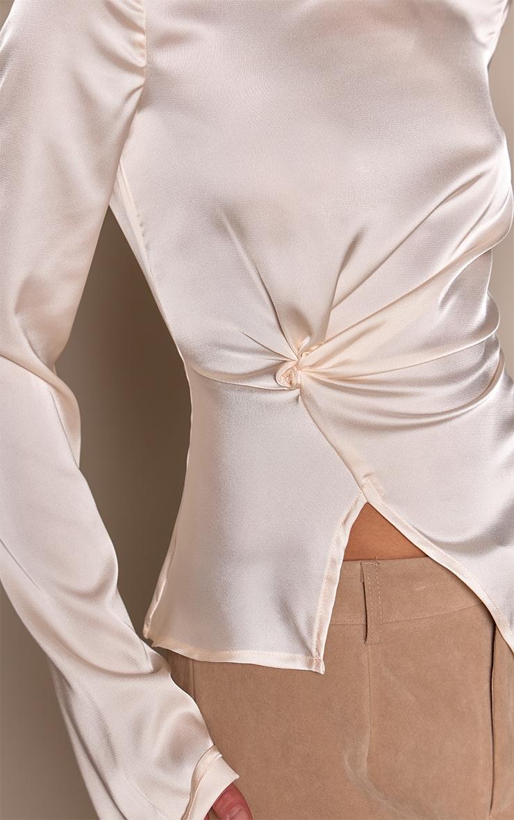 Command attention in the cream satin twist waist long sleeve top. Crafted from cream satin, it features a sleek neckline and an artful twisted waist. This piece is perfect for sophisticated evening plans. Pair with tailored pants, sharp pointed heels, and minimal gold bracelets.Length approx 48.5cm/19inch (Based on sample size US 4)Model wears size UK 8/ EU 36/ AUS 8/ US 4Model Height - 5ft 8inchp]:!mb-4inch>Brand: PrettyLittleThingCategory: TopsProduct type: BlouseColor: CreamMaterial: SatinOccasion: Evening