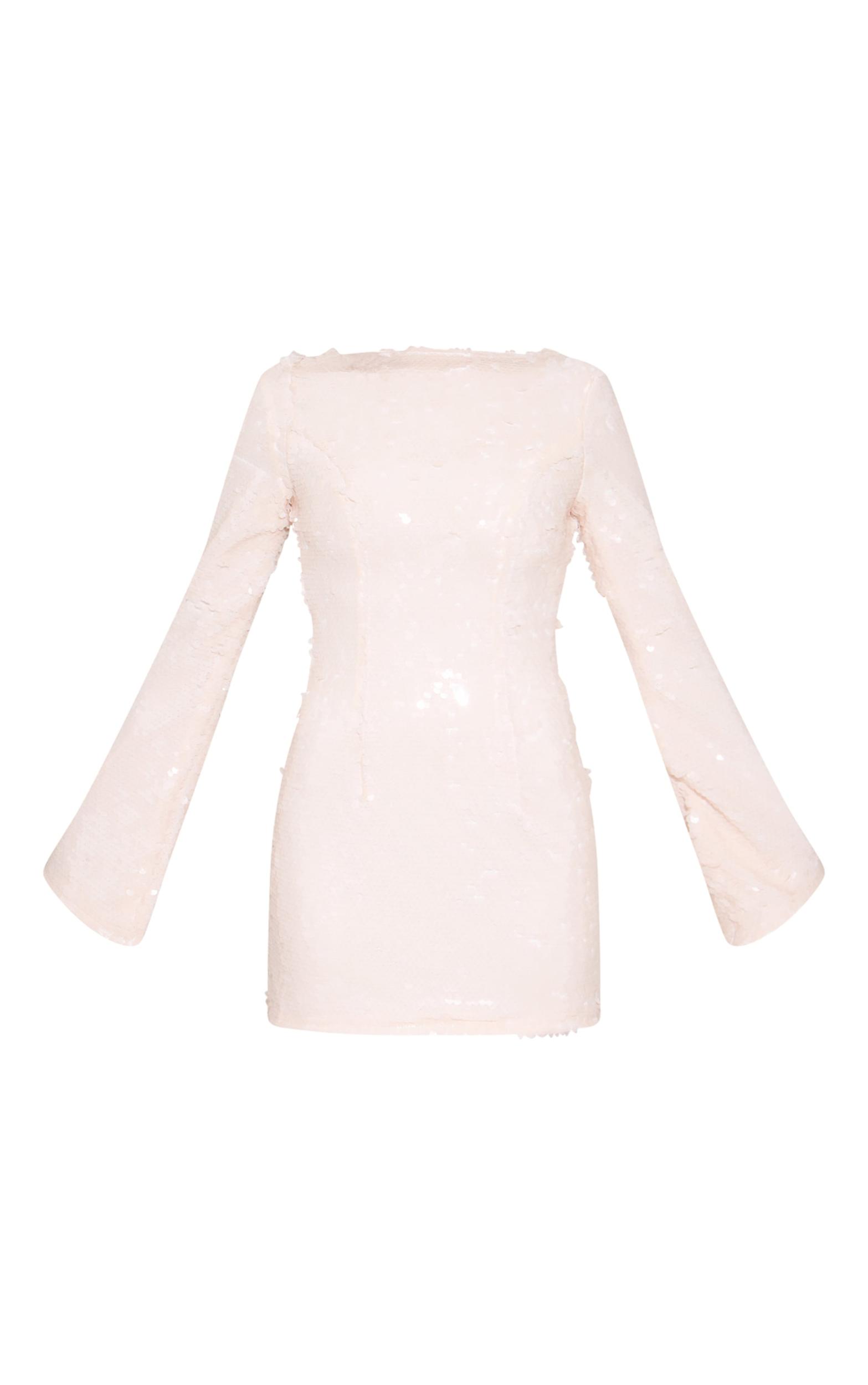 Own the spotlight with a knowing shimmer. The cream sequin boat neck shift dress illuminates your presence, artfully crafted with a refined boat neckline and sleek long sleeves. Its effortless shift silhouette skims the figure to a confident mini length, entirely adorned in iridescent cream sequins that catch every light. Complete this captivating look with sharp high heels to elongate your profile and delicate gold jewelry, ensuring an aesthetic that speaks volumes without a whisper. This piece ensures your presence is effortlessly polished, from cocktails to late-night events.Length approx 81.5cm/32inch (Based on sample size US 4)Model wears size UK 8/ EU 36/ AUS 8/ US 4Model Height - 5ft 5inchp]:!mb-4inch>Brand: PrettyLittleThingCategory: DressesProduct type: Shift DressColor: CreamMaterial: SequinOccasion: Occasion