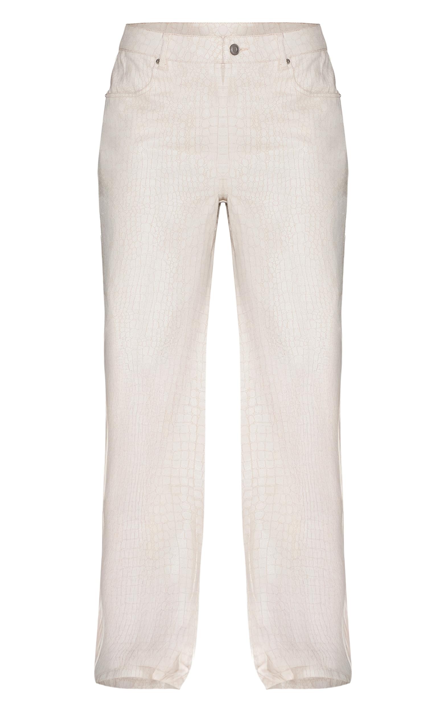 Take your look to new heights with these cream snake print mid waist straight leg coated jeans. Brought to you in a cream hue material with a snake print design, a mid waist fit and a coated detailing. Team these straight leg jeans with a pair of kitten heels and the matching vest to level up your look.Length approx 76cm/30inch (Based on sample size US 4)Model wears size UK 8/ EU 36/ AUS 8/ US 4Model Height - 5ft 7inchp]:!mb-4inch>Brand: PrettyLittleThingCategory: DenimProduct type: Straight Leg JeansColor: CreamMaterial: Rigid DenimDesign: PrintOccasion: Day