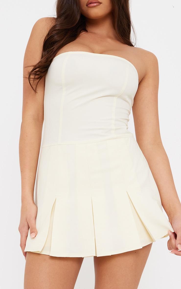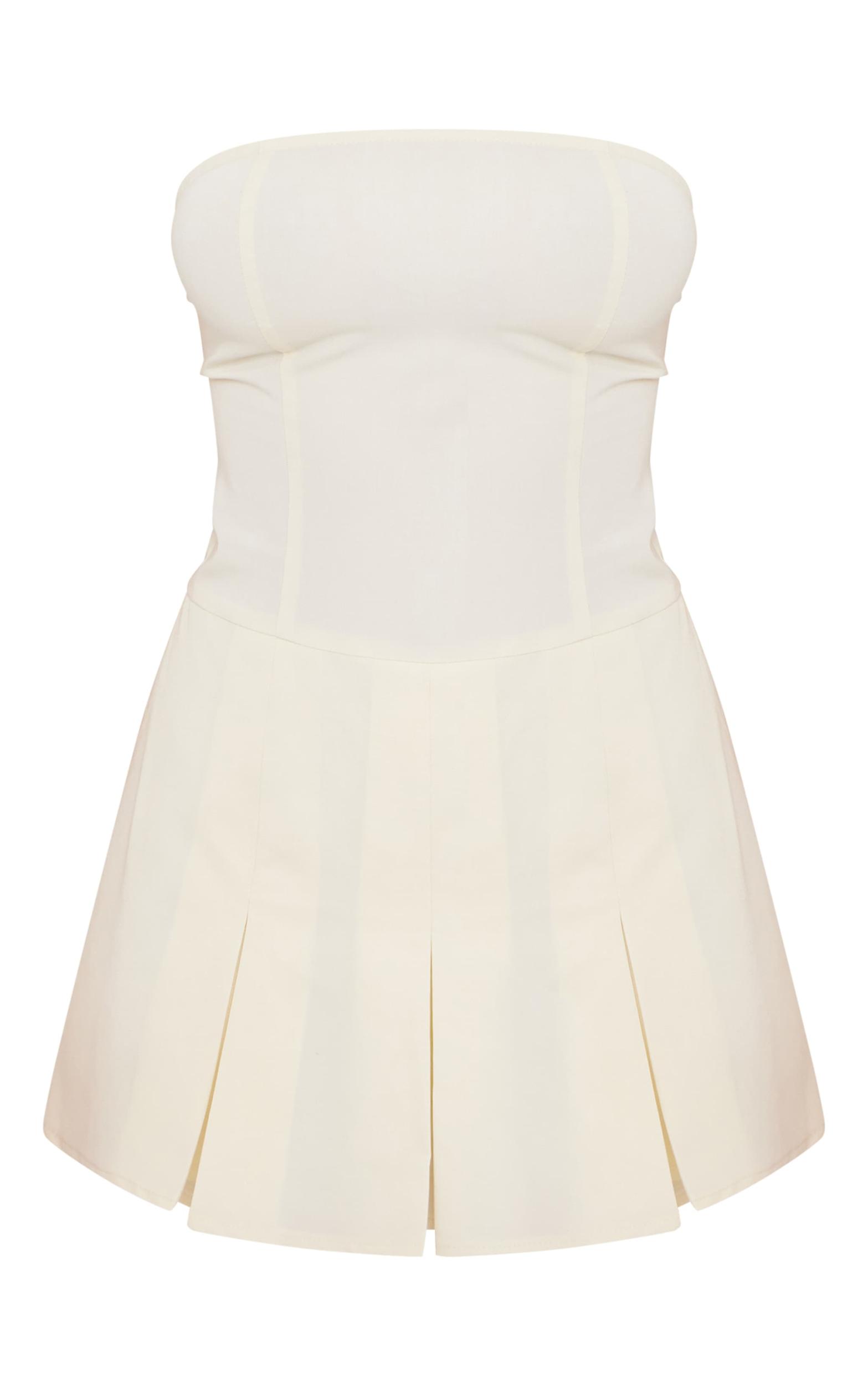 This cream tailored woven bandeau skort romper is here to solve all of your 'what to wear' dilemmas. Brought to you in a cream hue woven material with a bandeau neckline and a flattering tailored fit, how can you not be in love? Style this skort romper with your highest heels and some glam accessories for a look that is sure to steal all the stares. Length approx 58cm/23inch (Based on a sample size UK 8) Model wears size UK 8/ EU 36/ AUS 8/ US 4Model Height - 5ft 8inchp]:!mb-4inch>Category: DressesProduct type: Skort PlaysuitColor: CreamMaterial: Woven CrepeDesign: PlainNeckline: BandeauOccasion: Evening