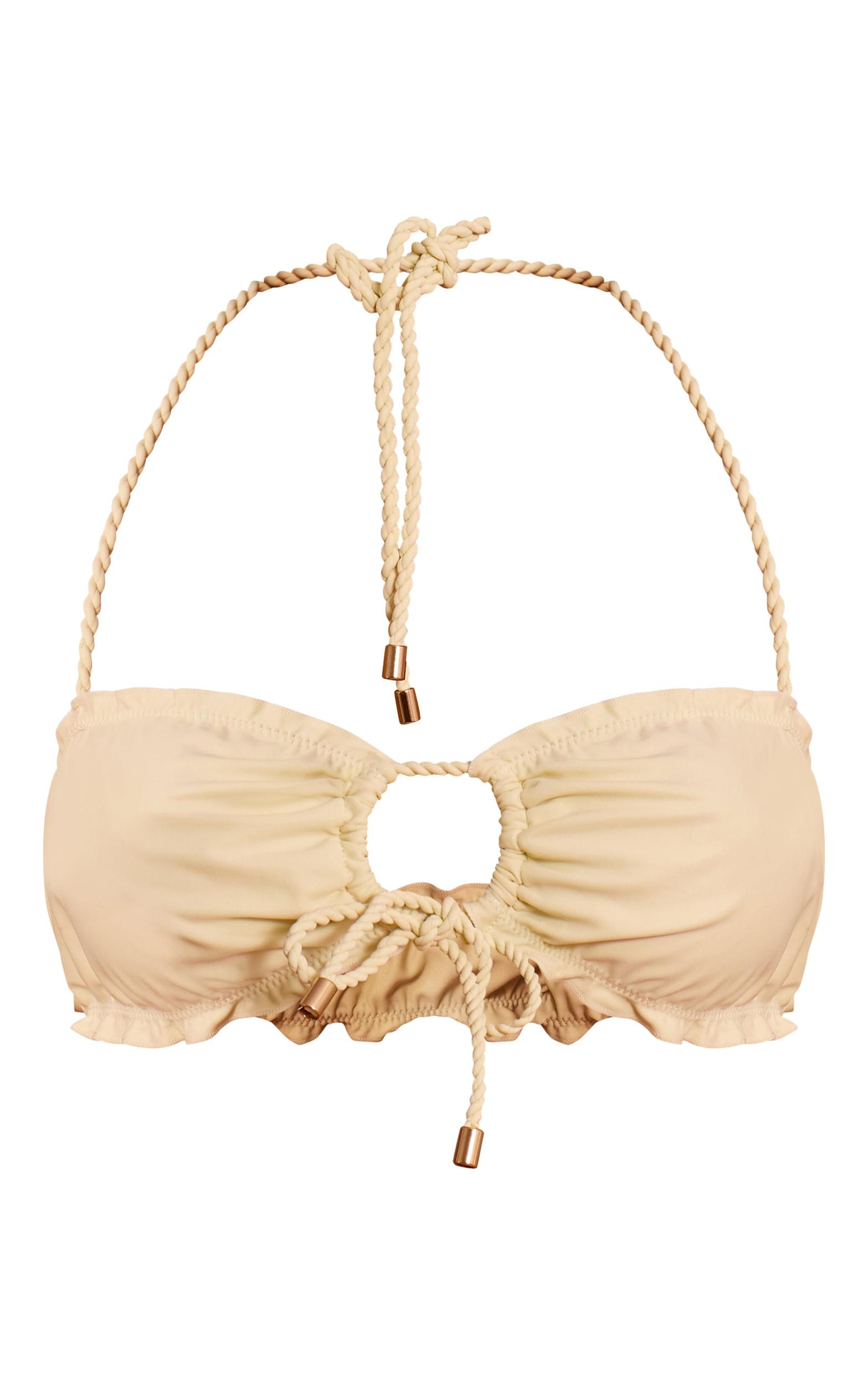 Keep it flattering with the cream twist detail ruched bikini top. Made from a cream swim fabric, this bikini top features twist detailing and light ruching for a sculpted look. Pair with gold accessories and slip-on sandals for beachside elegance.Length approx 29cm/11.5inch (Based on sample size US 4)Model wears size UK 8/ EU 36/ AUS 8/ US 4Model Height - 5ft 6inchp]:!mb-4inch>Brand: PrettyLittleThingCategory: SwimwearProduct type: Bandeau Bikini TopColor: CreamMaterial: SwimOccasion: Day