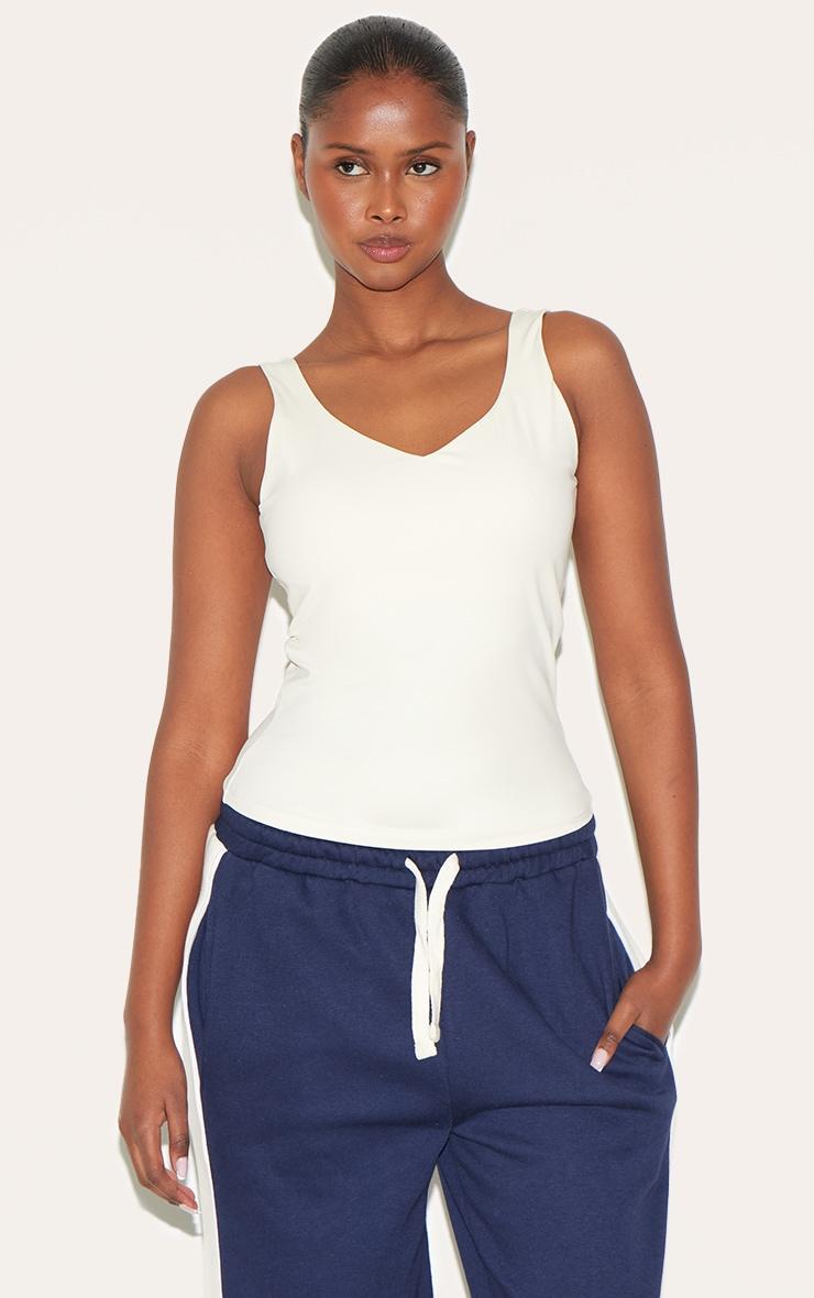 Level up your basics collection with this cream sculpt padded longline sports bra. Brought to you in a cream sculpt material with a padded design, this longline sports bra is a must-have. Team with a pair of sweatpants and your fave accessories to feel confident this season and beyond. Length approx 48cm/19inch (Based on a sample size S) Model wears size SModel Height - 5ft 9inchp]:!mb-0inch>Category: ActivewearProduct type: Sports BraColor: CreamMaterial: Sculpt ActiveDesign: PlainNeckline: ScoopSleeves: SleevelessOccasion: Day