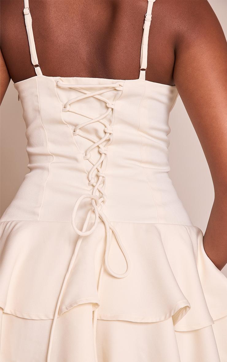 Exude elegance in the cream woven corset detail tiered mini dress. Made from a cream woven material, it features corset detailing, tiered layers, and a mini length for romantic charm. Pair with kitten heels and gold earrings for timeless styling.Length approx 81.5cm/32inch (Based on sample size US 4)Model wears size UK 8/ EU 36/ AUS 8/ US 4Model Height - 5ft 9inchp]:!mb-4inch>Brand: PrettyLittleThingCategory: DressesProduct type: Corset DressColor: CreamMaterial: Tailored WovenOccasion: Evening