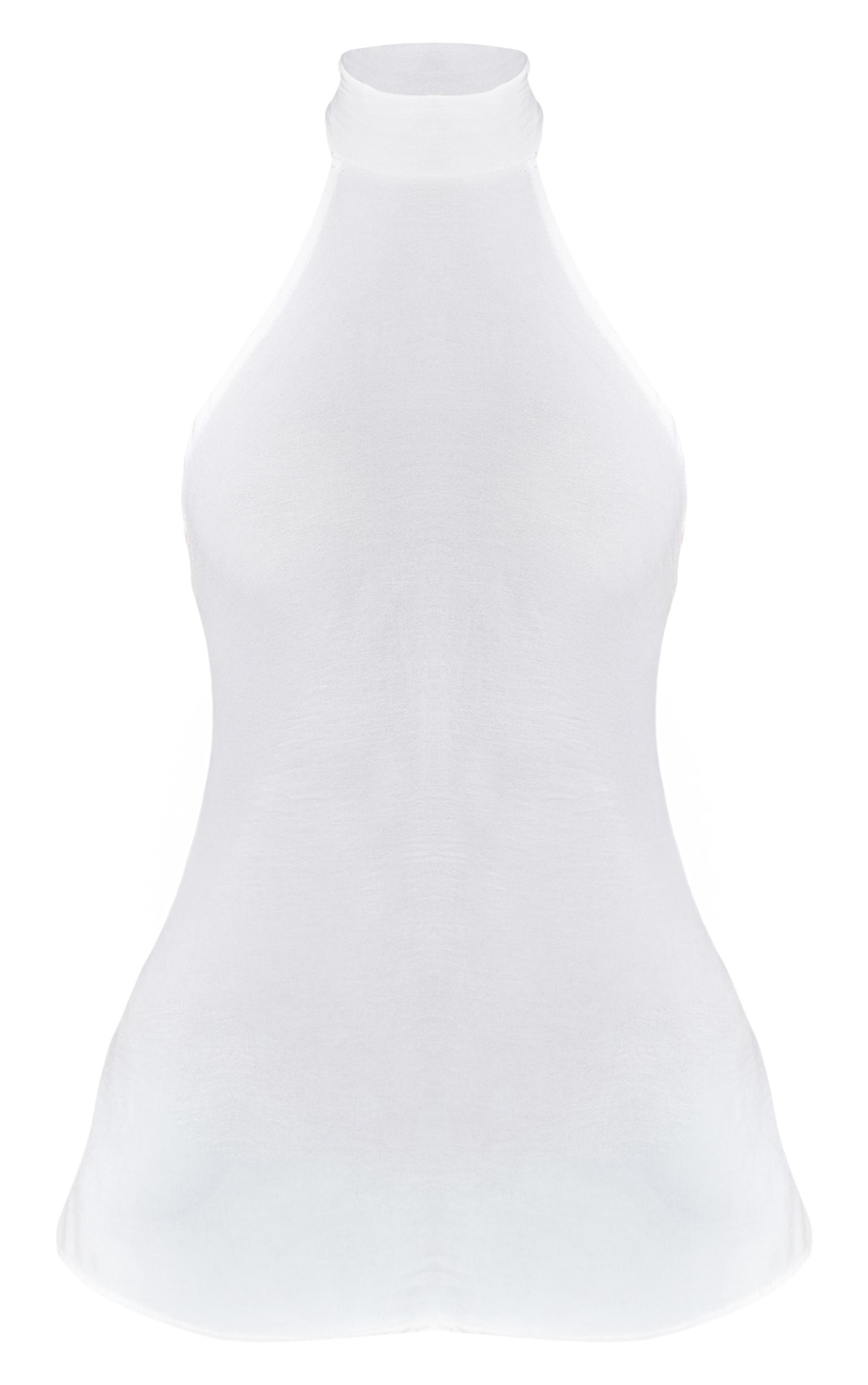 Bring a knowing edge to your daywear with this essential top. The cream woven high neck tie back detail long top features a distinctive halter neckline that sweeps into a clean high neck, elegantly secured at the back with a subtle tie detail. Its elongated cut drapes effortlessly, ensuring a modern profile perfect for everyday styling. Team this versatile piece with crisp tailored pants for a sharp, polished ensemble, or pair with wide-leg denim for a confident, relaxed daytime aesthetic.Length approx 48.5cm/19inch (Based on sample size US 4)Model wears size UK 8/ EU 36/ AUS 8/ US 4Model Height - 5ft 8inchp]:!mb-4inch>Category: TopsProduct type: Cami TopColor: CreamMaterial: Woven CrepeDesign: PlainNeckline: High NeckSleeves: SleevelessOccasion: Day