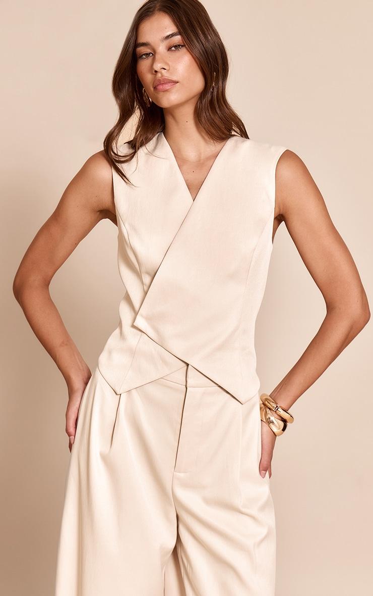 Reimagine tailoring with the cream woven tailored asymmetric vest jumpsuit. Featuring structured woven fabric, a vest-style bodice and wide leg fit, it’s a unique piece for day or night. Add gold jewelry and heeled mules to finish the look.Length approx 160cm/63inch (Based on sample size US 4)Model wears size UK 8/ EU 36/ AUS 8/ US 4Model Height - 5ft 8inchp]:!mb-4inch>Brand: PrettyLittleThingCategory: DressesProduct type: Wide Leg JumpsuitColor: CreamMaterial: Woven CrepeNeckline: V NeckSleeves: SleevelessOccasion: Evening