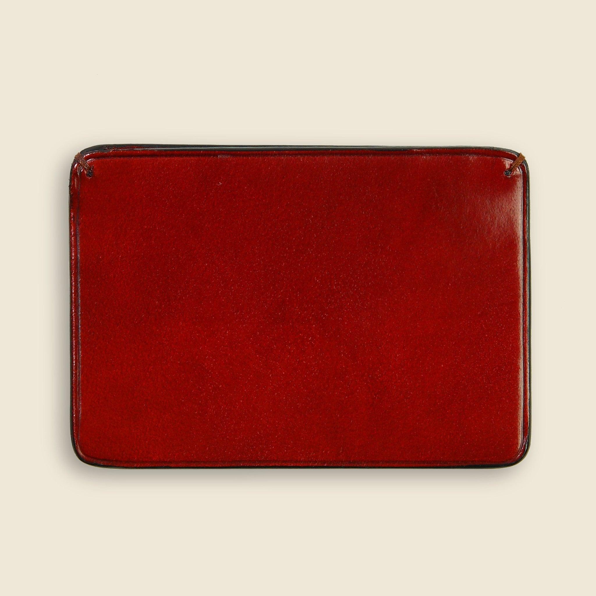 Slim, classic Italian-made wallet that’s made to go the distance. Features the ability to hold up to four cards in a compact, veg-tanned card case design. Il Bussetto's rich history of impeccably handcrafted leather goods culminates in an incredible assortment of functional wallets and cardholders. Vegetable-tanned leather Hand-painted with natural colors One central slip pocket and two card slots Made in Italy Dimensions: 3.9" x 2.75"