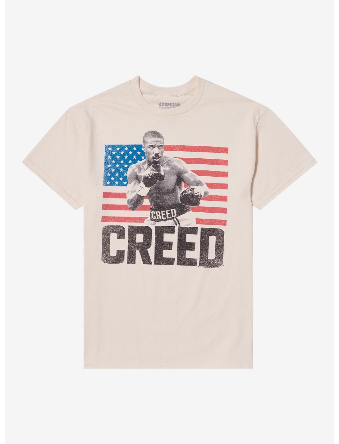 The son of Apollo Creed, Adonis, is ready to rumble. This beige tee inspired by the film Creed shows Adonis mid-fight, against an American flag background and the film title below.100% cottonWash cold; dry lowImportedListed in men's/unisex sizes