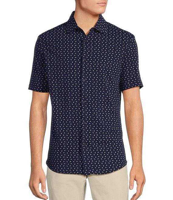 Cremieux Blue Label Diamond Geo Print Jersey Short Sleeve Coatfront Shirt