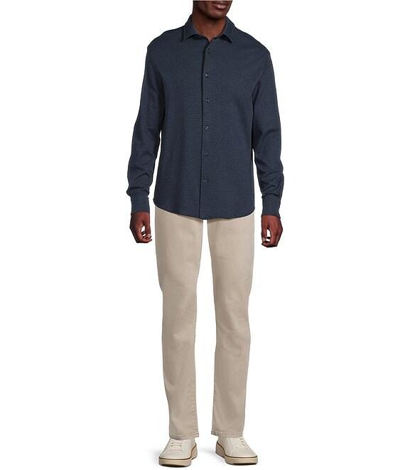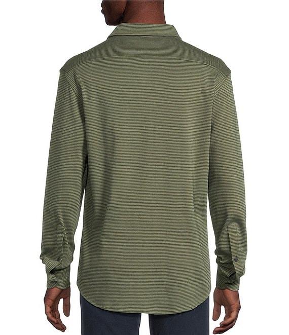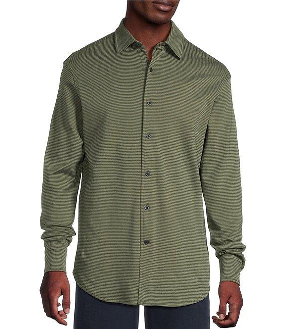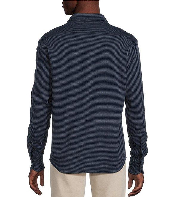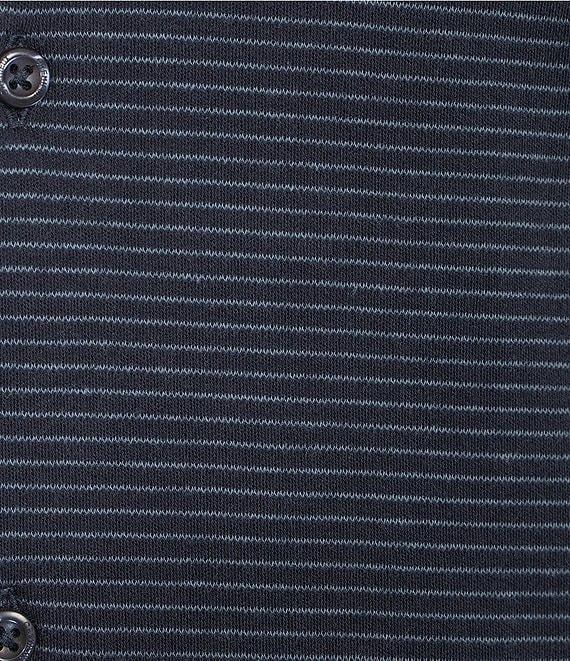 Cremieux Blue Label Interlock Coat Front Long Sleeve Striped Knit Shirt