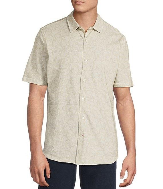 Cremieux Blue Label Jersey Knit Paisley Print Short Sleeve Button Front Shirt