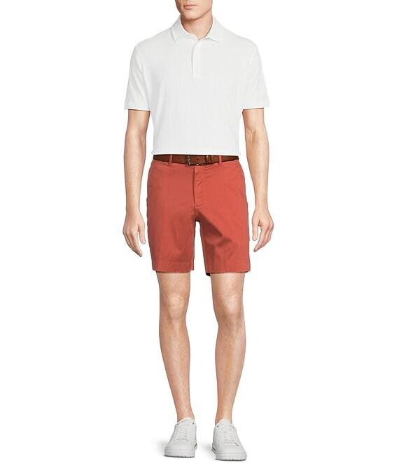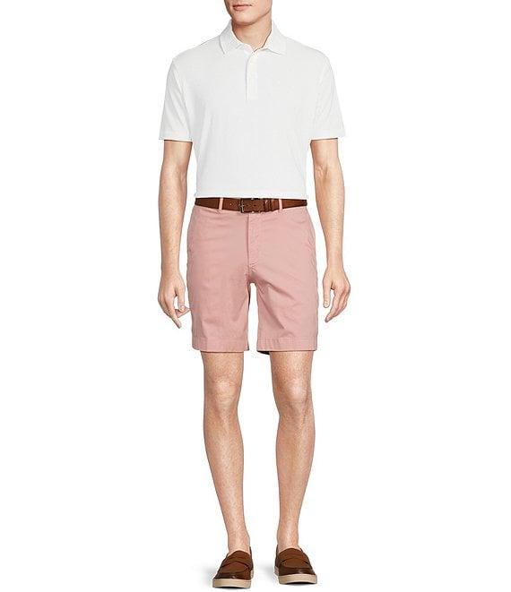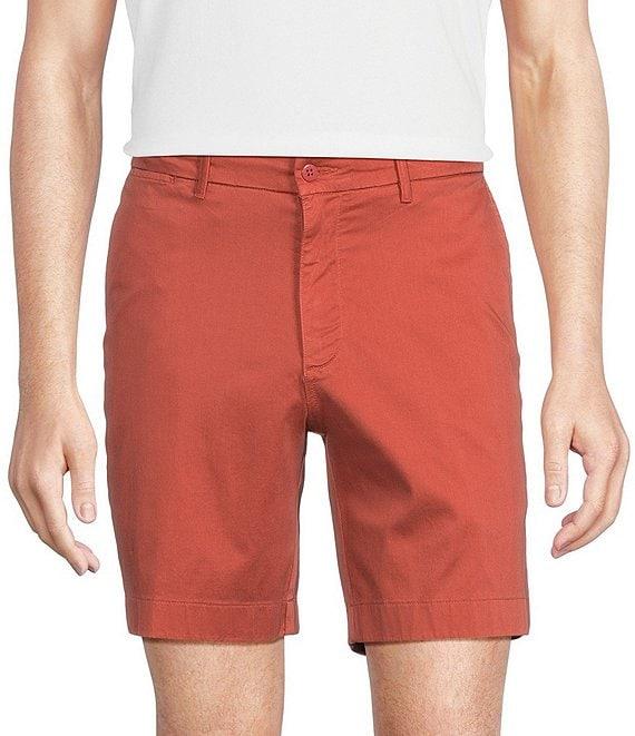 From Cremieux, these shorts feature: Garment-dyed Sateen fabric Mid-rise Classic fit Flat front Belt loops Zip fly with button closure 2 front slant pockets 2 flat back pockets with button closure Embroidered logo on back Approx. 8" inseam Cotton/modal/spandex Machine wash/tumble dry Imported.