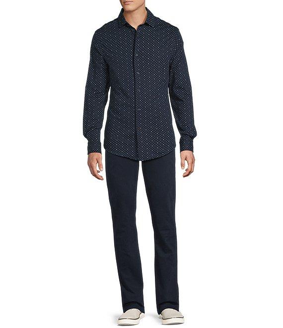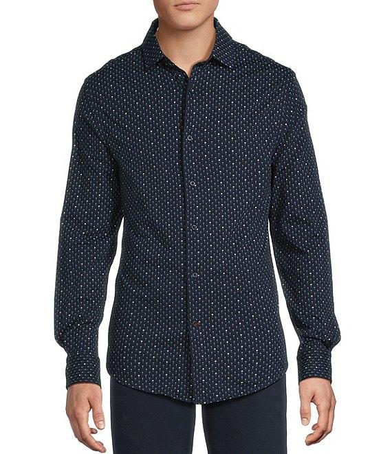 Cremieux Blue Label Interlock Coat Front Long Sleeve Geometric Print Knit Shirt