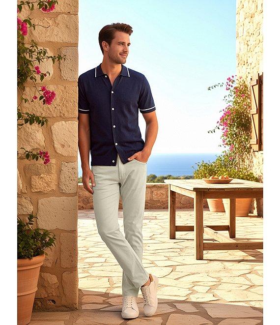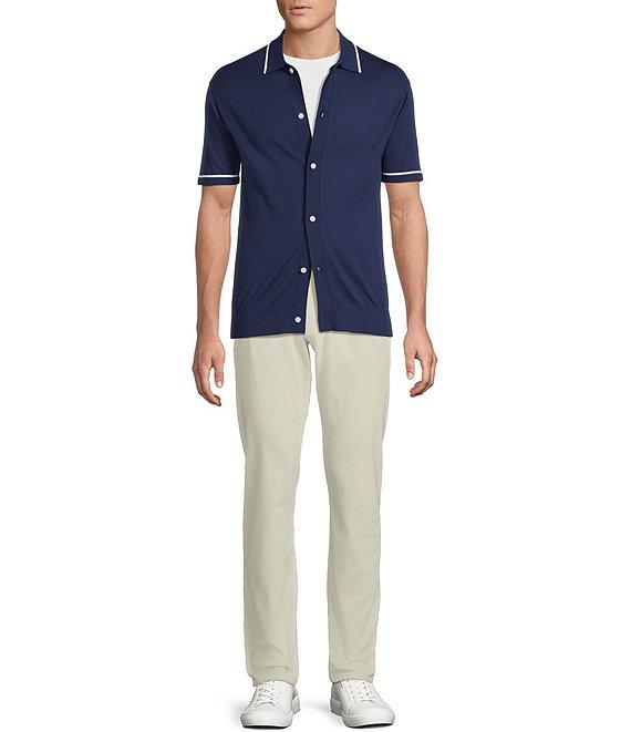 From Cremieux Blue Label, this sweater features: Solid tone Spread collar White tipping detail on collar and arm cuffs Short sleeves Button-front closure Cotton Machine wash/tumble dry Imported.