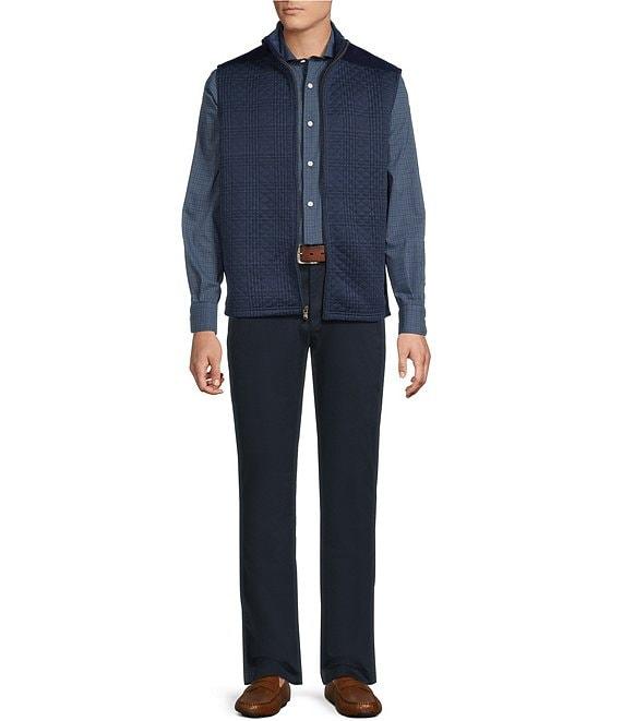From Cremieux Blue Label, this vest features: Diamond quilted double knit construction Classic fit Stand collar Sleeveless Zip-front closure Water resistant Faux suede shoulder patches Suede detailed pockets with zipper Polyester Machine wash/tumble dry Imported.