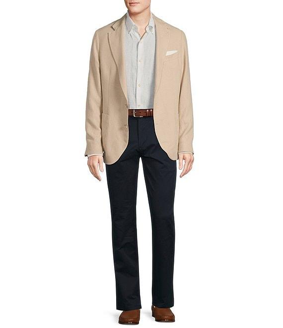 From Cremieux, this blazer features: Solid tone Notch lapel; keyhole on lapel 2 patch pockets Chest welt pocket 3-button closure Double vented Linen/ Polyester Dry Clean Imported.