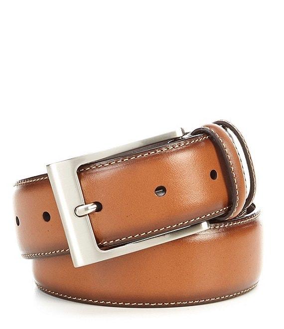 From Cremieux, this belt features: 35mm feather and stitch edge Burnish Veg Tanned Full Grain Cowhide Lined on Soft Glove Genuine Leather with Classic Nickel Brush Finish Buckle Spot clean Imported. Suggested belt size: Take your existing pants size and add two inches. Ex. if your pants size is 32, purchase a size 34.