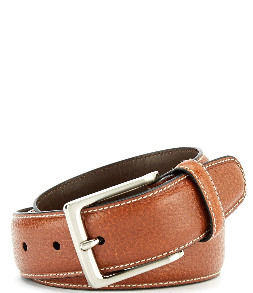 From Cremieux, this belt features: 35mm feather edge pebble full grain cowhide contrast stitching classic nickel brushed buckle full grain cowhide lined on full grain glove leather spot clean Imported. Suggested belt size: Take your existing pants size and add two inches. E.g. if your pants size is 32, purchase a size 34.