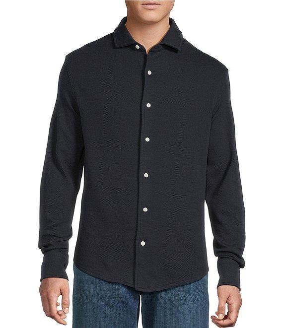 Cremieux Premium Denim Tonal Plaid Long Sleeve Coat Front Knit Shirt