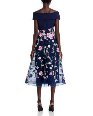 Crepe Off-the-Shoulder Embroidered Tulle Dress