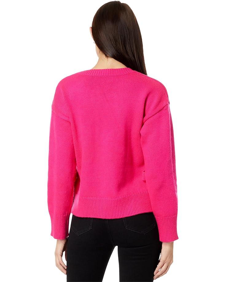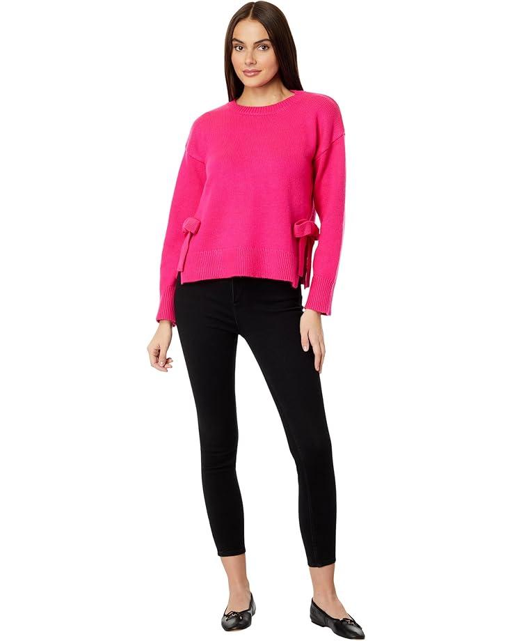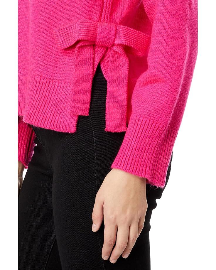 The English Factory® Side Tie Crew Neck Sweater is a charming addition to your wardrobe. It features a ribbed round neckline, adding texture and style to your look. The unique detail of side slits with bow ties adds a playful and feminine touch.