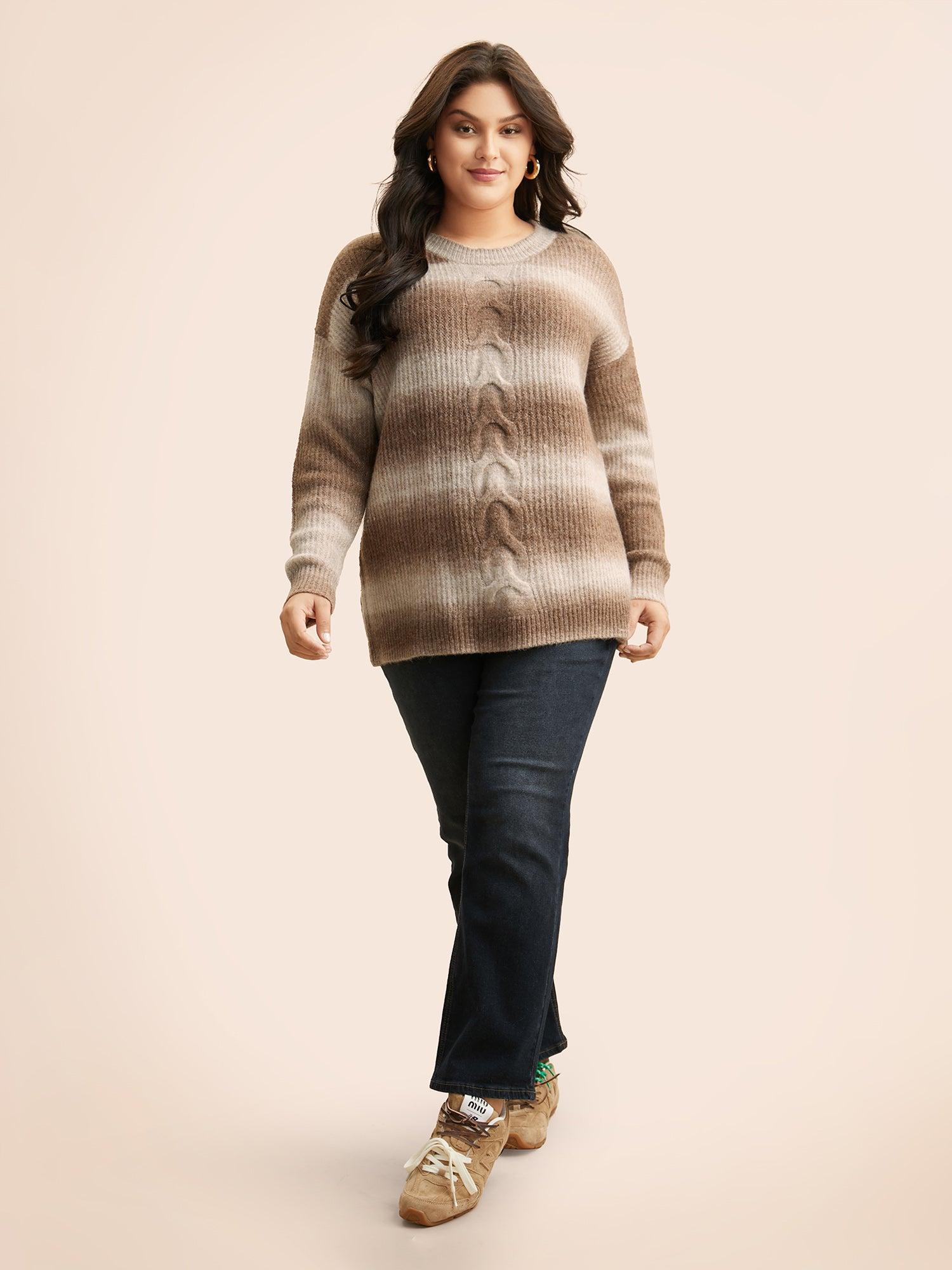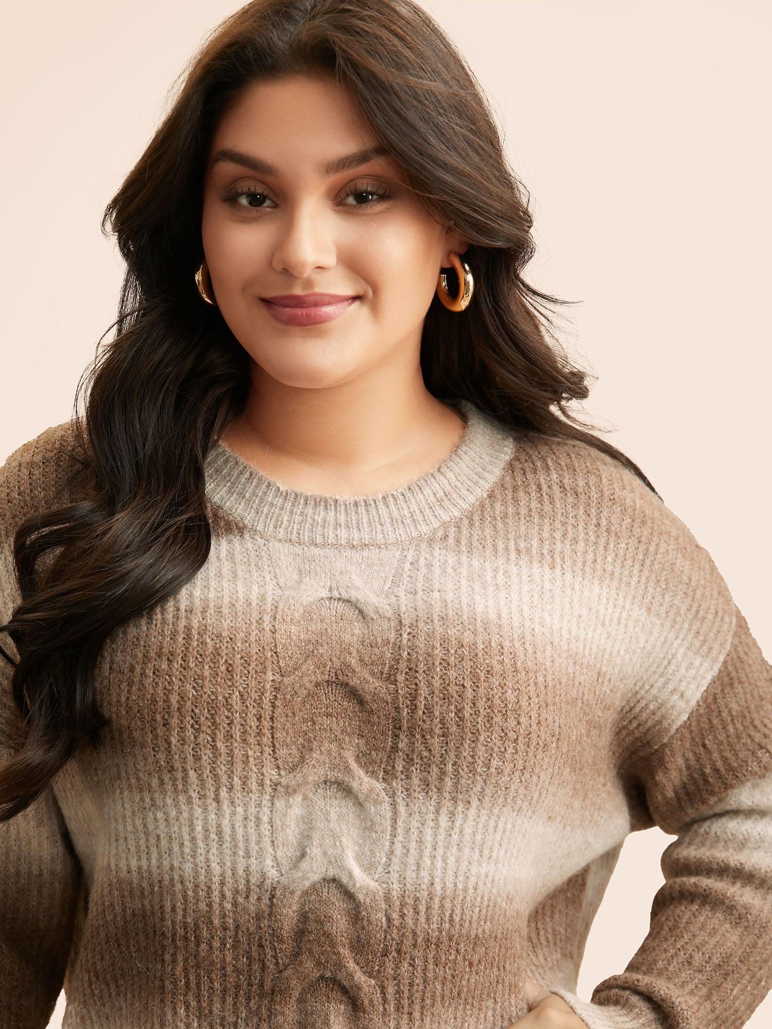 Shop Crew Neck Textured Drop Shoulder Pullover now and redefine your style with confidence at BloomChic. Tailored for mid and plus-size women. This trendy Sweaters Cardigans Women, sizes 10-30. Season:Winter;Color:Yellowishbrown;Style:Casual;Neckline:Round Neck;Sleeve Type:Drop shoulder sleeve;Prints:Ombre;Details:Texture, Cable Knit;Pocket:No-pocket;Belt:No-belt;Closure Type:Non