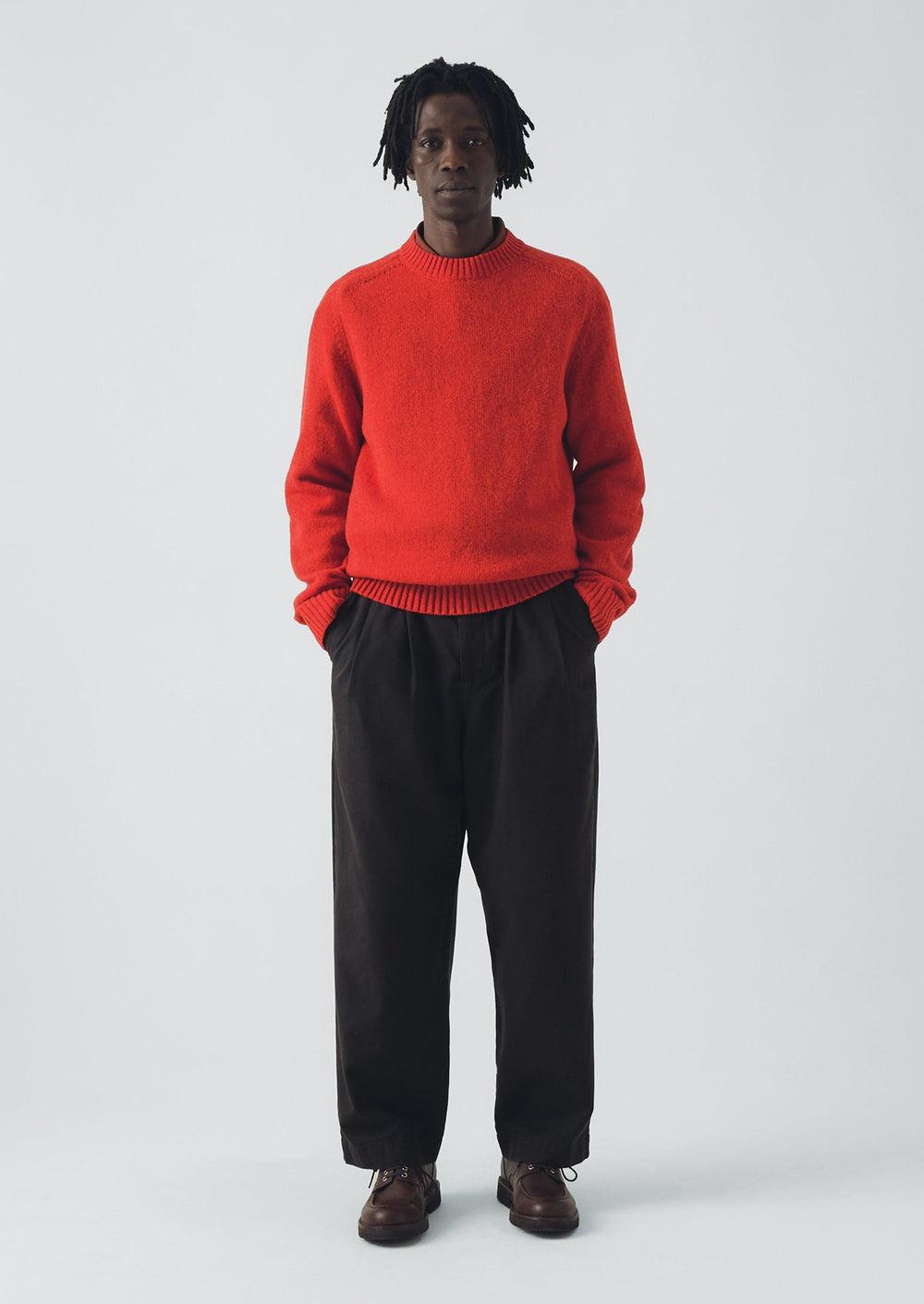 Marled Wool. Crew neck. Ribbed trims. Saddle shoulder. Regular fit.